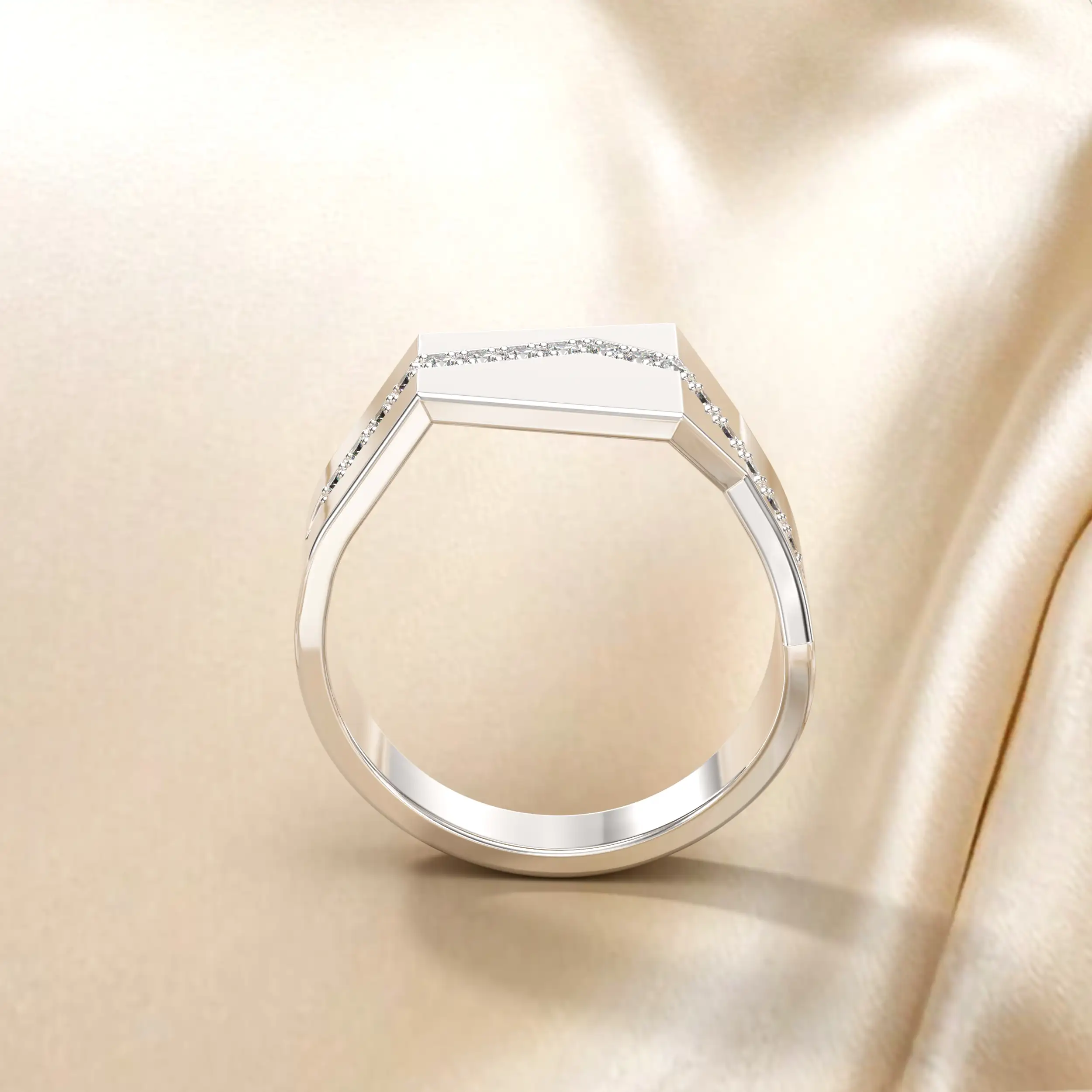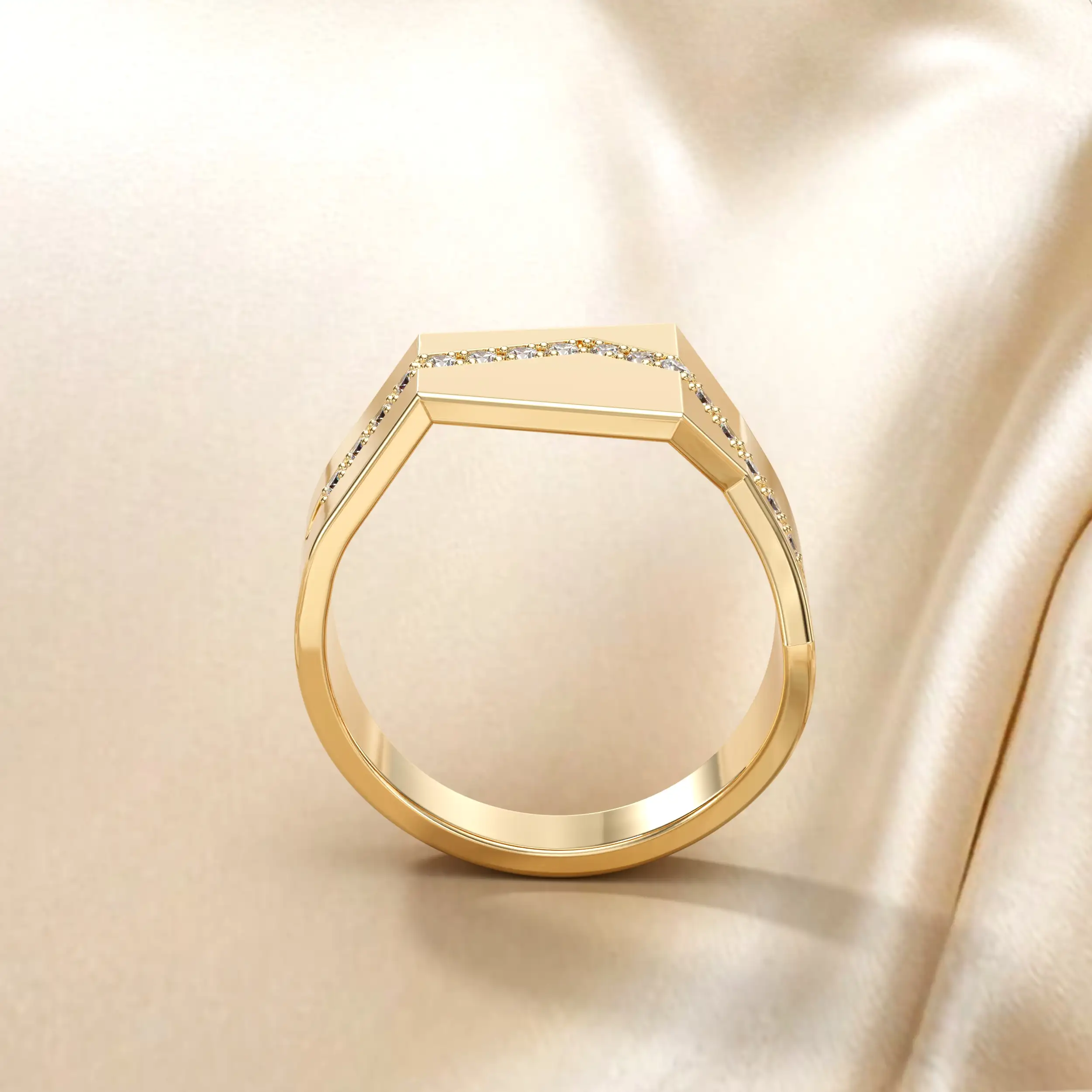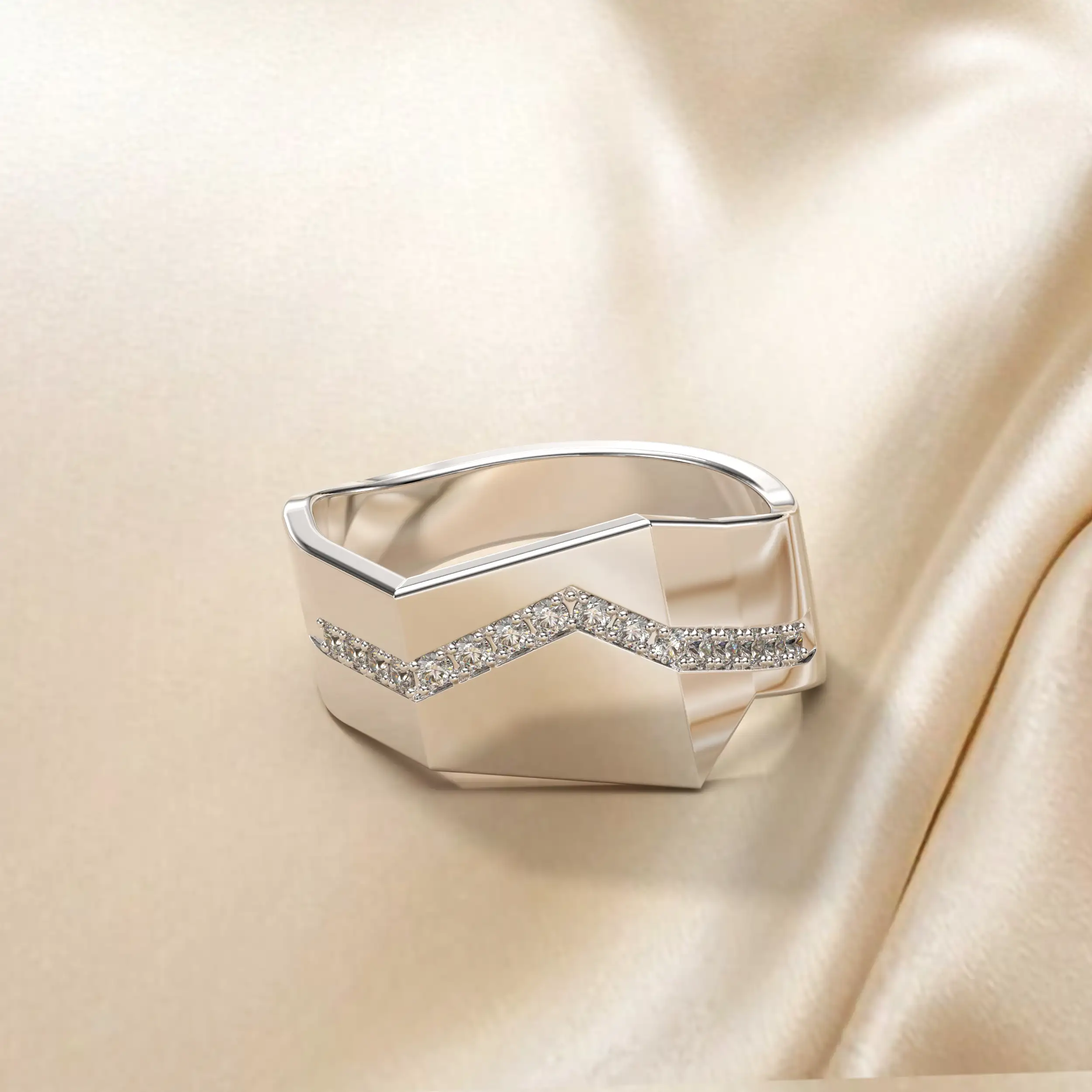טבעת בצורה גאומטרית בעיצוב יוצא דופן, בשיבוץ קל של יהלומים.