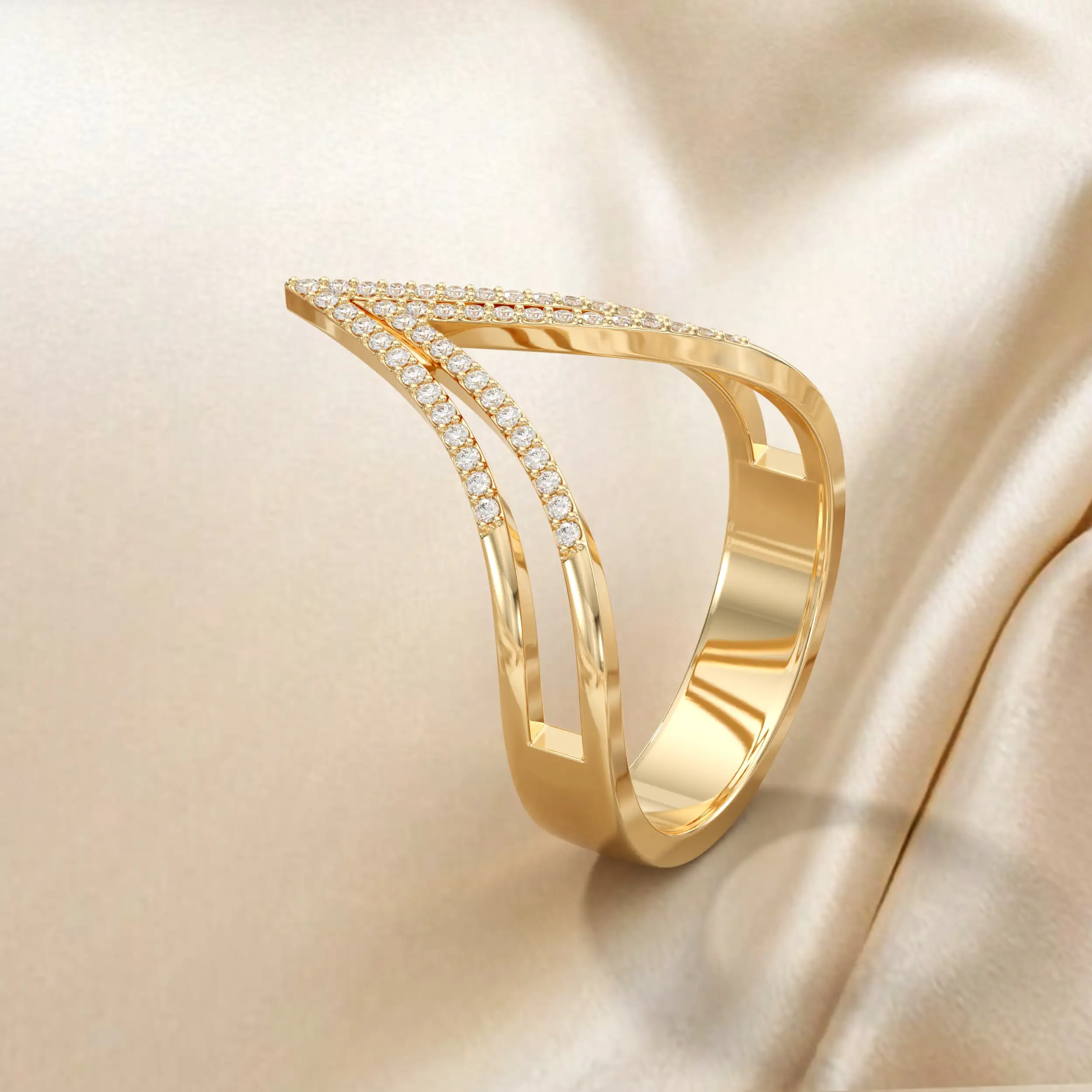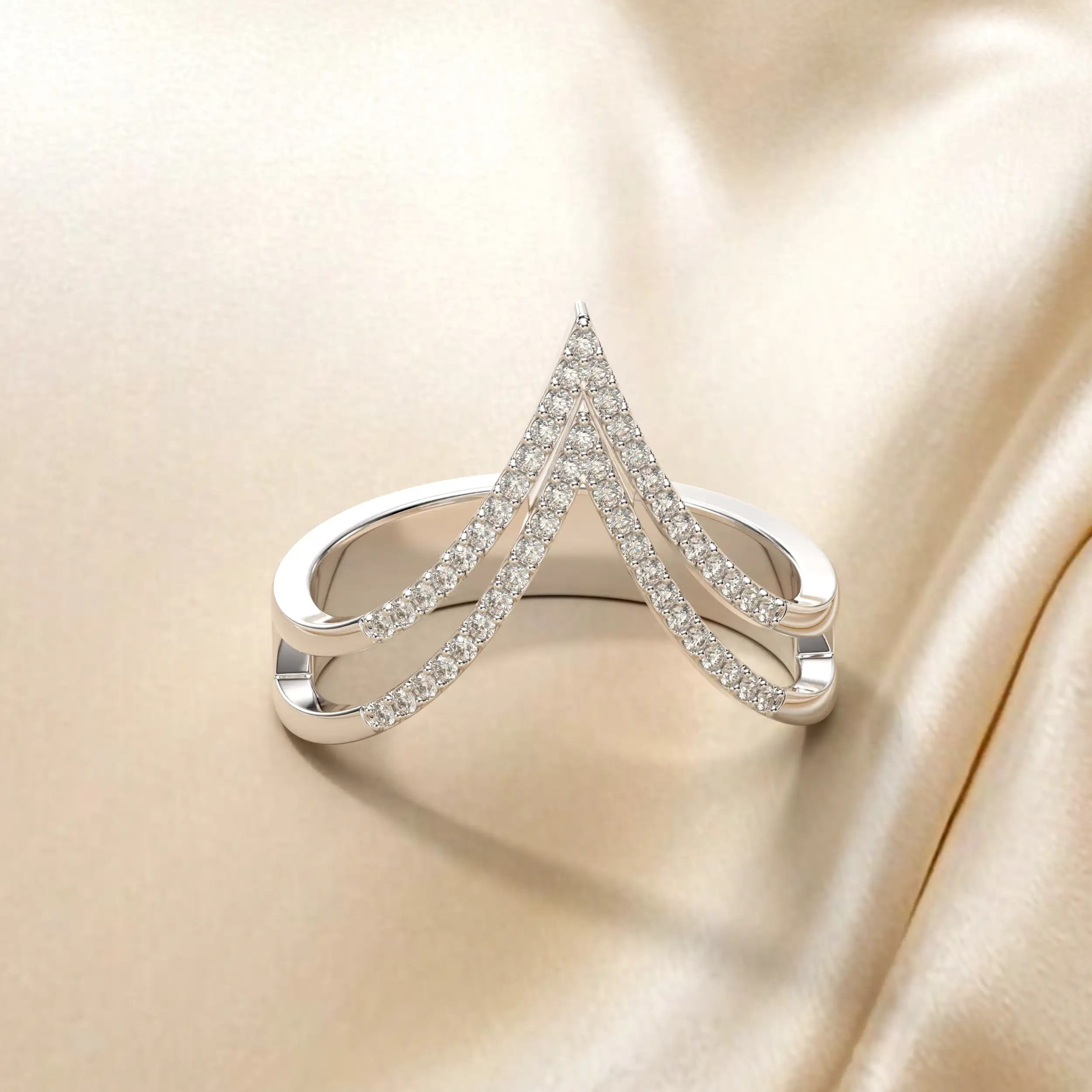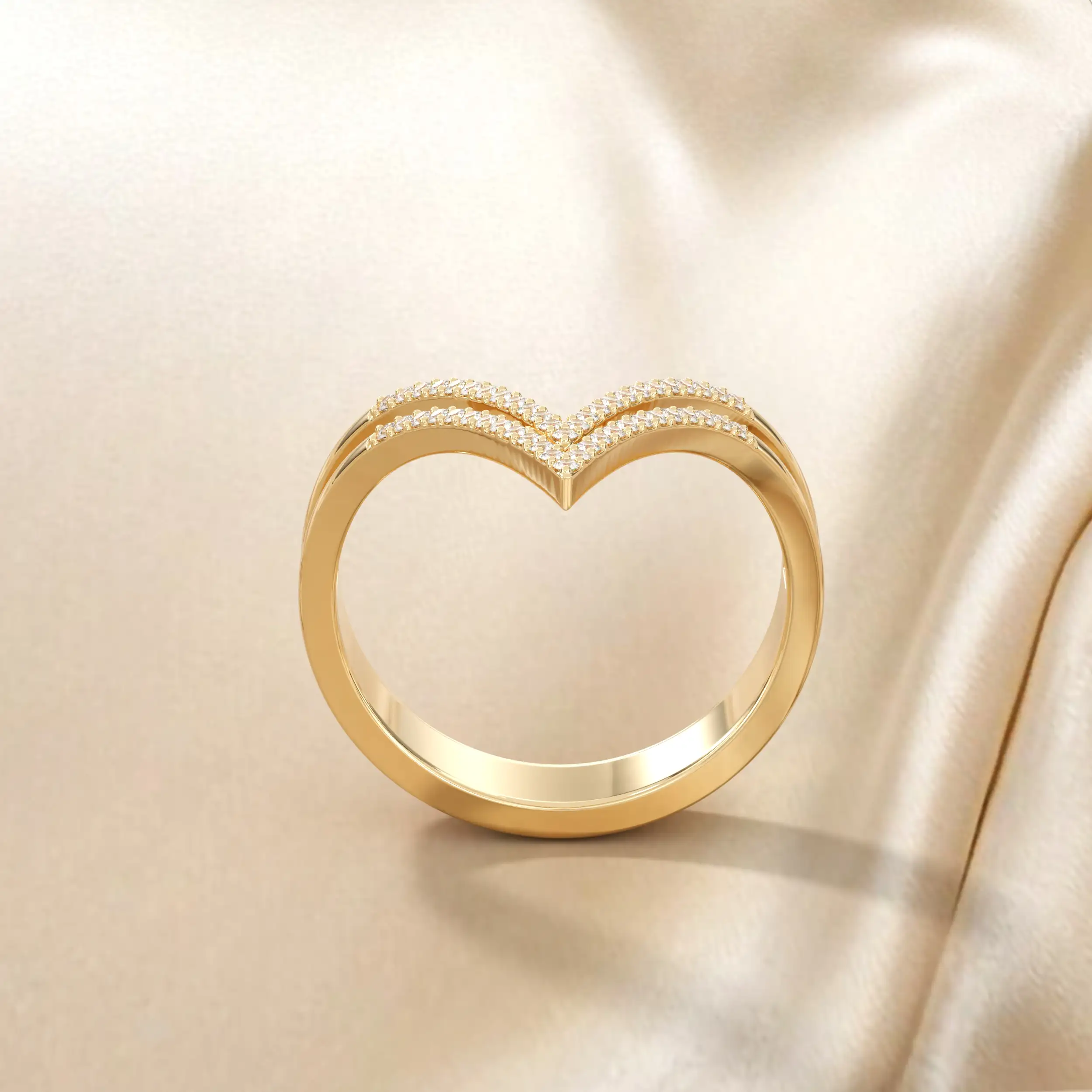 טבעת וי כפולה בשיבוץ יהלומים למראה המושלם.