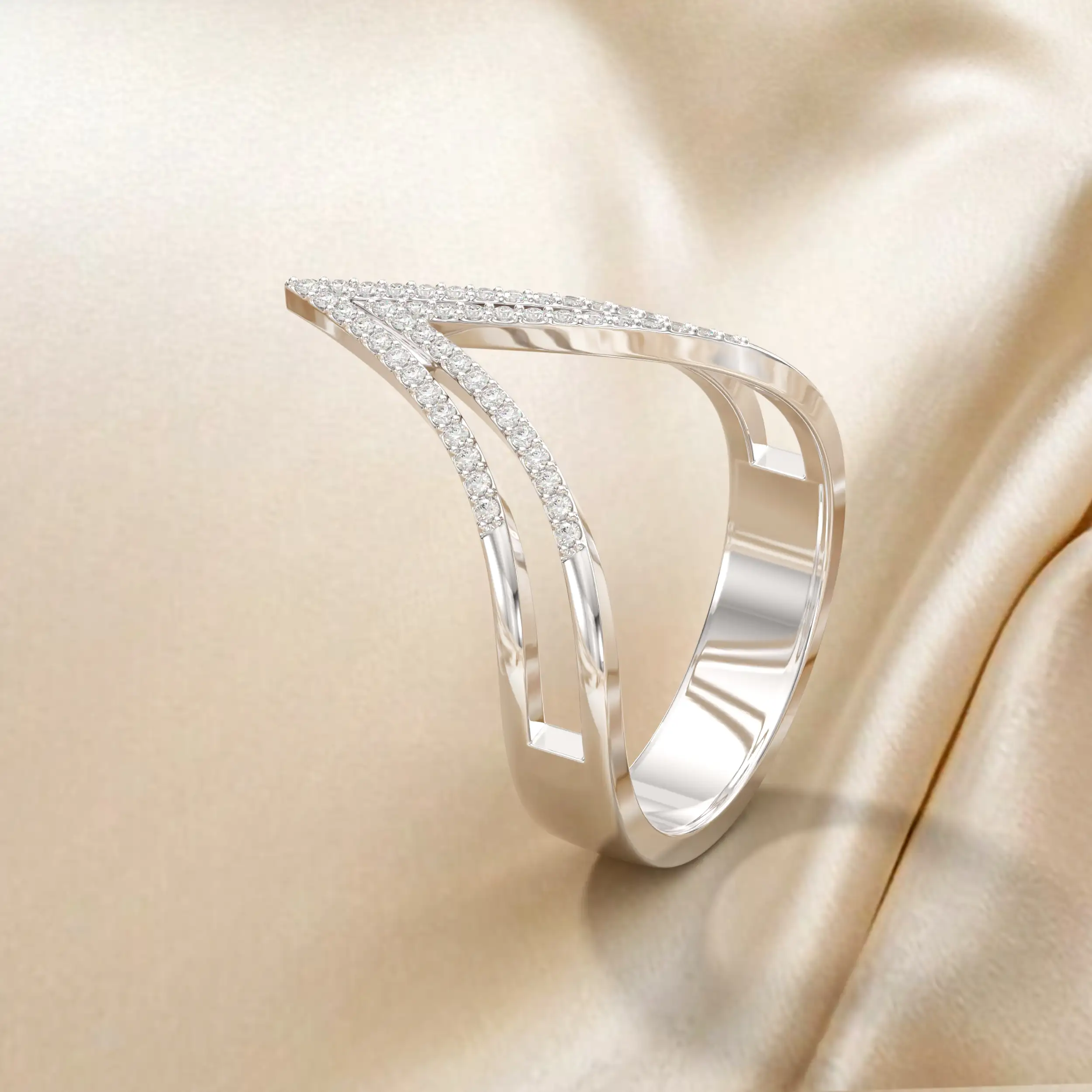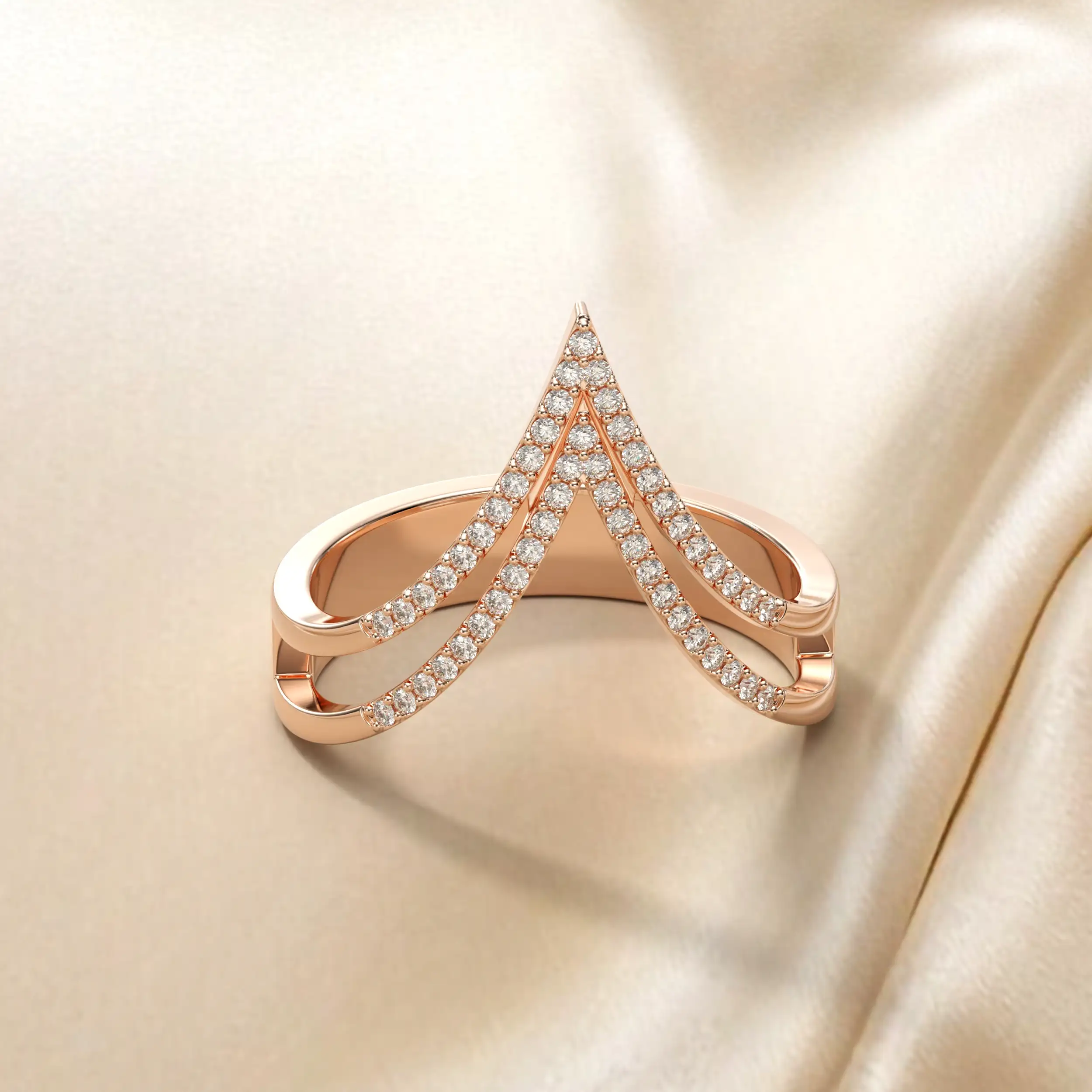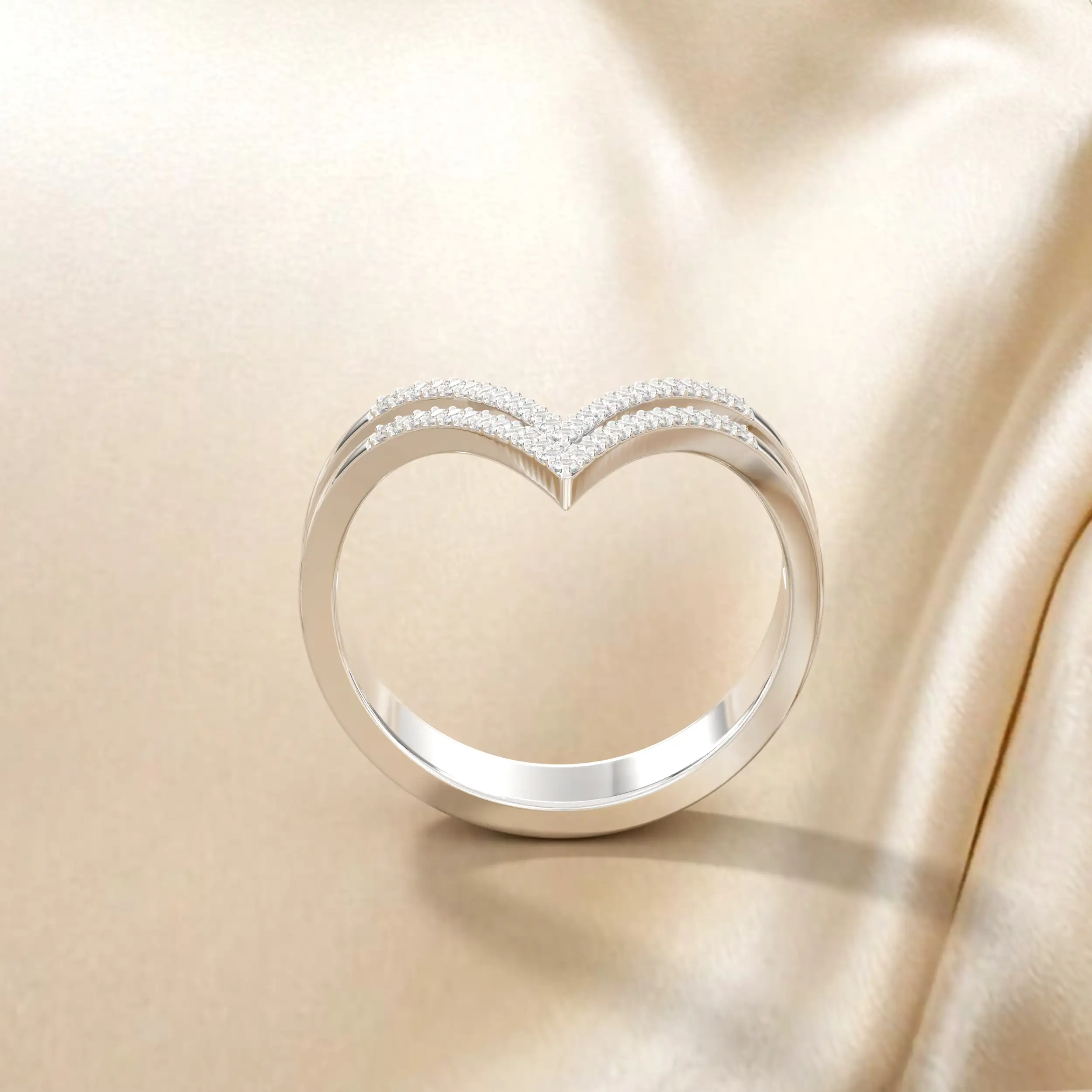 טבעת וי כפולה בשיבוץ יהלומים למראה המושלם.