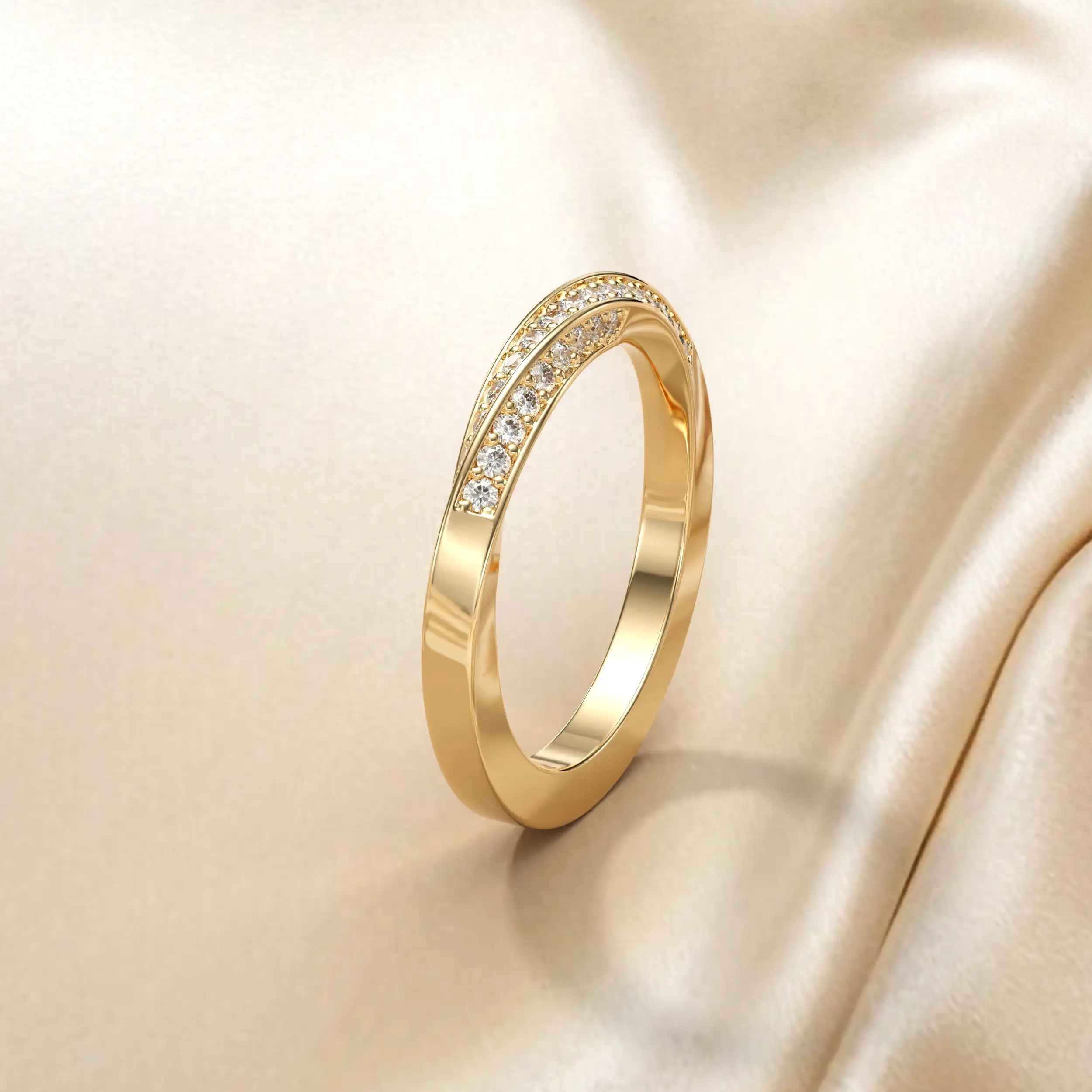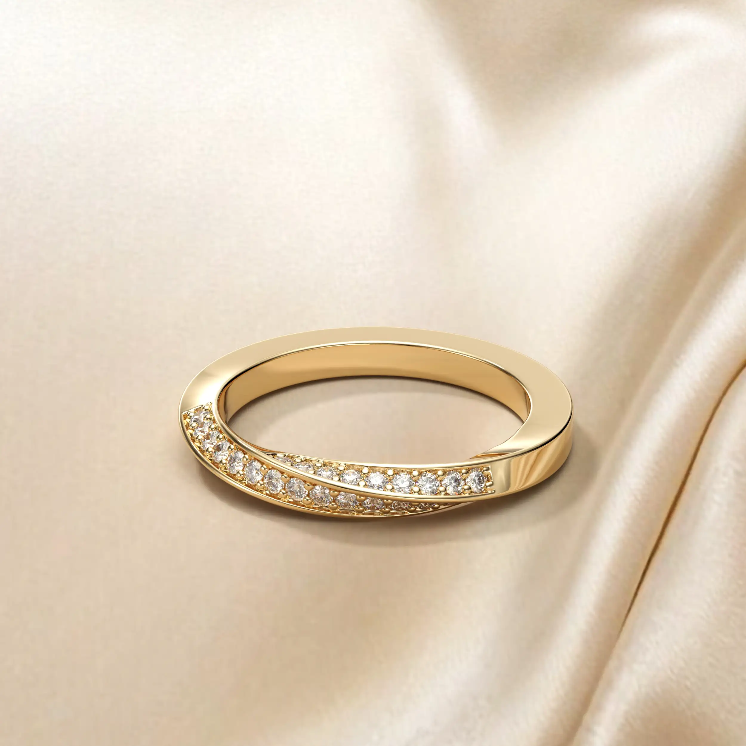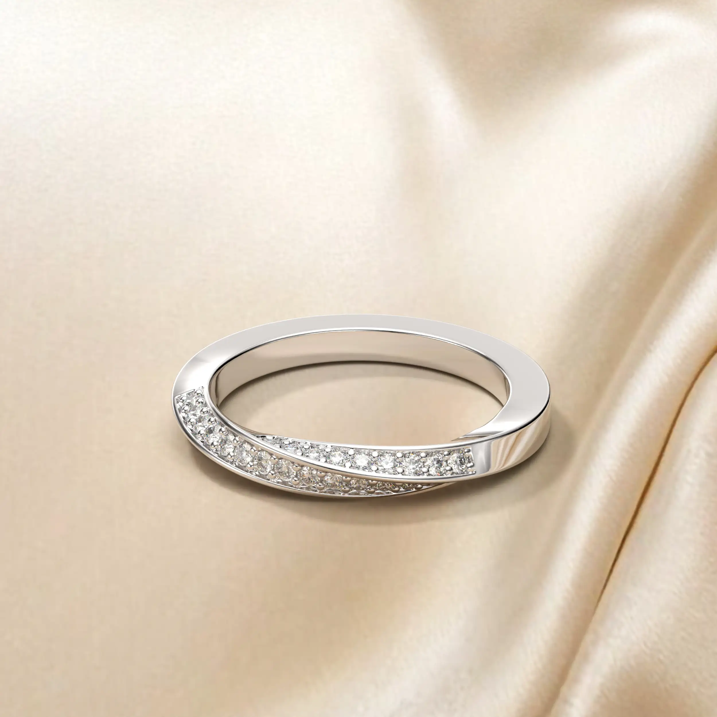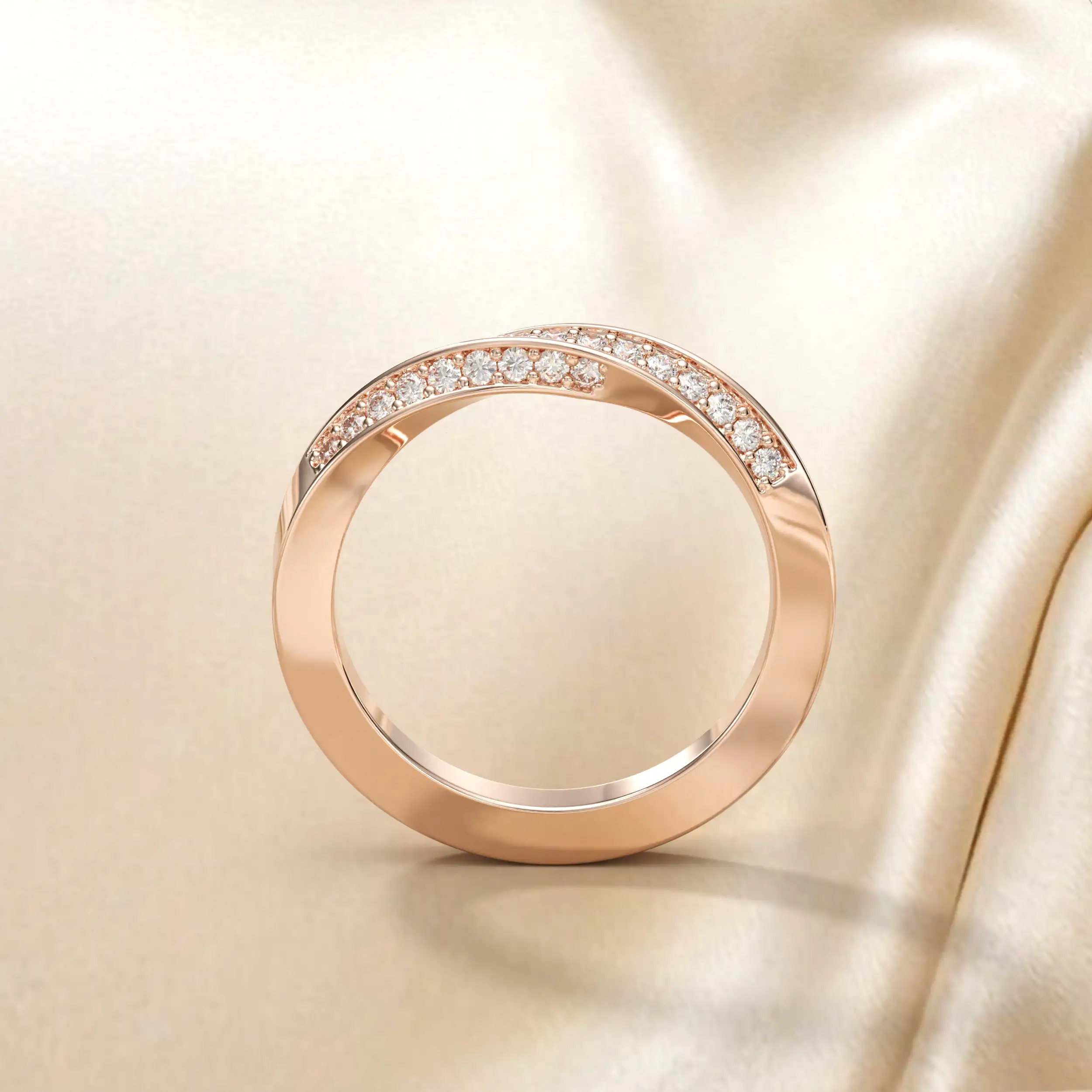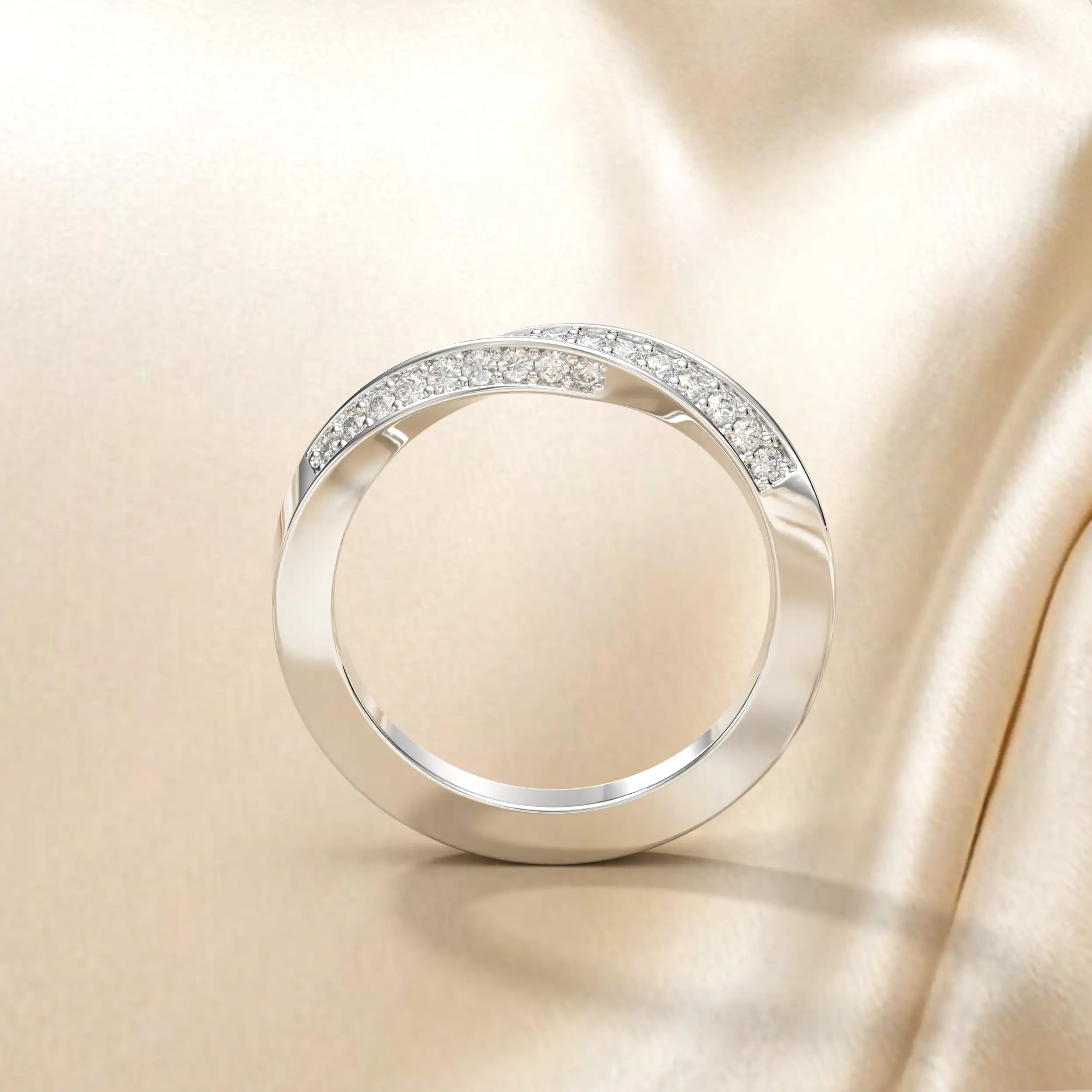טבעת חצי טוויסט משובצת יהלומים, בהרמוניה מושלמת של צורות.