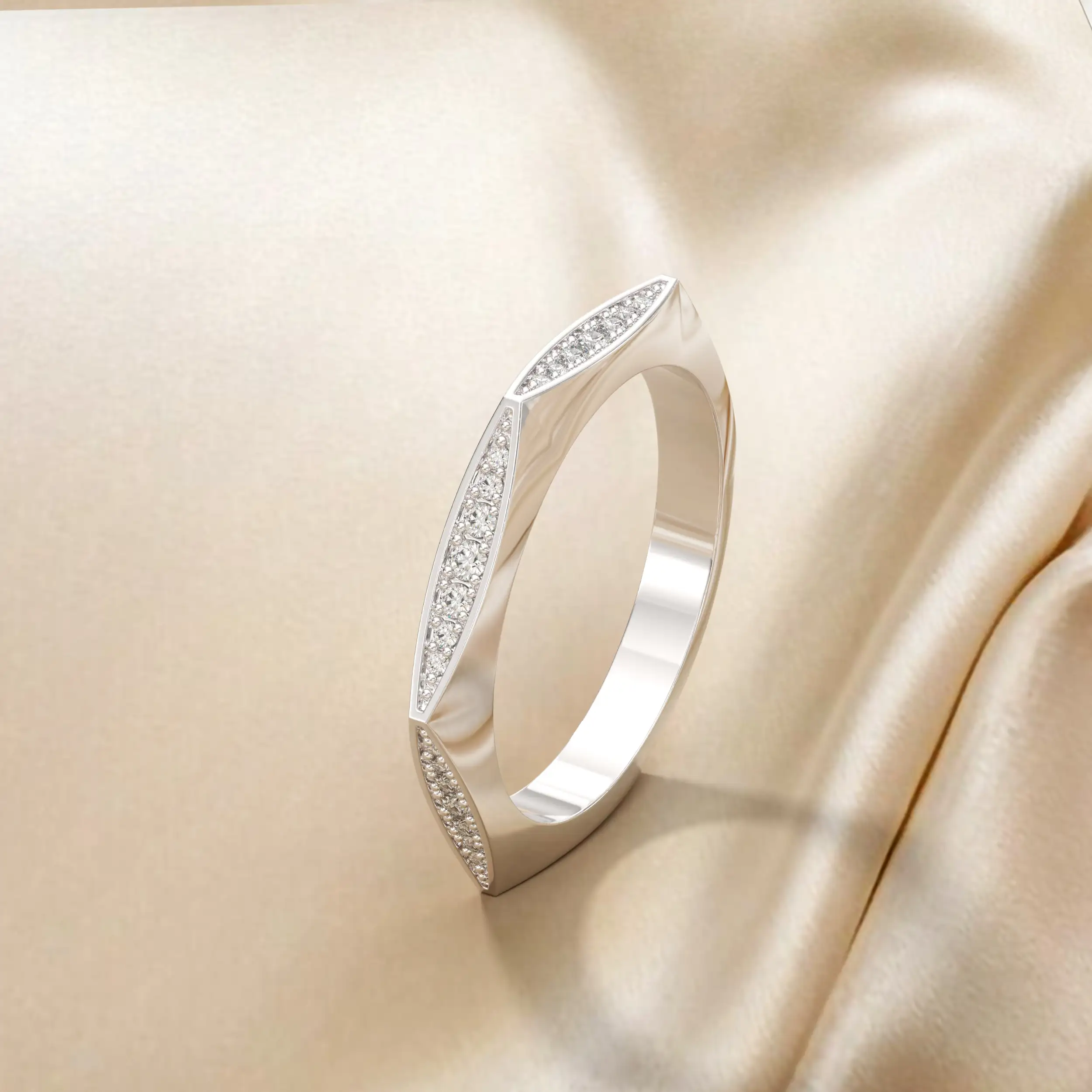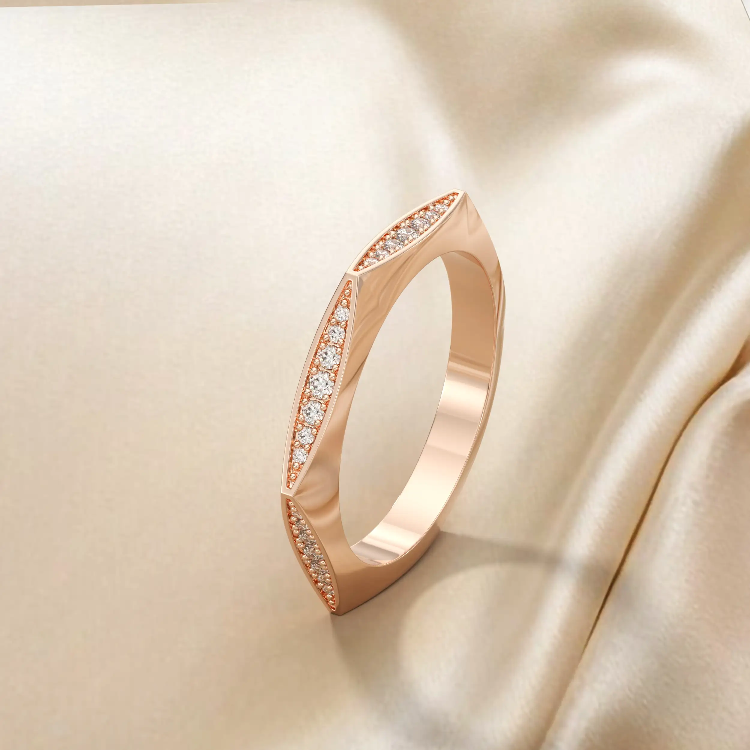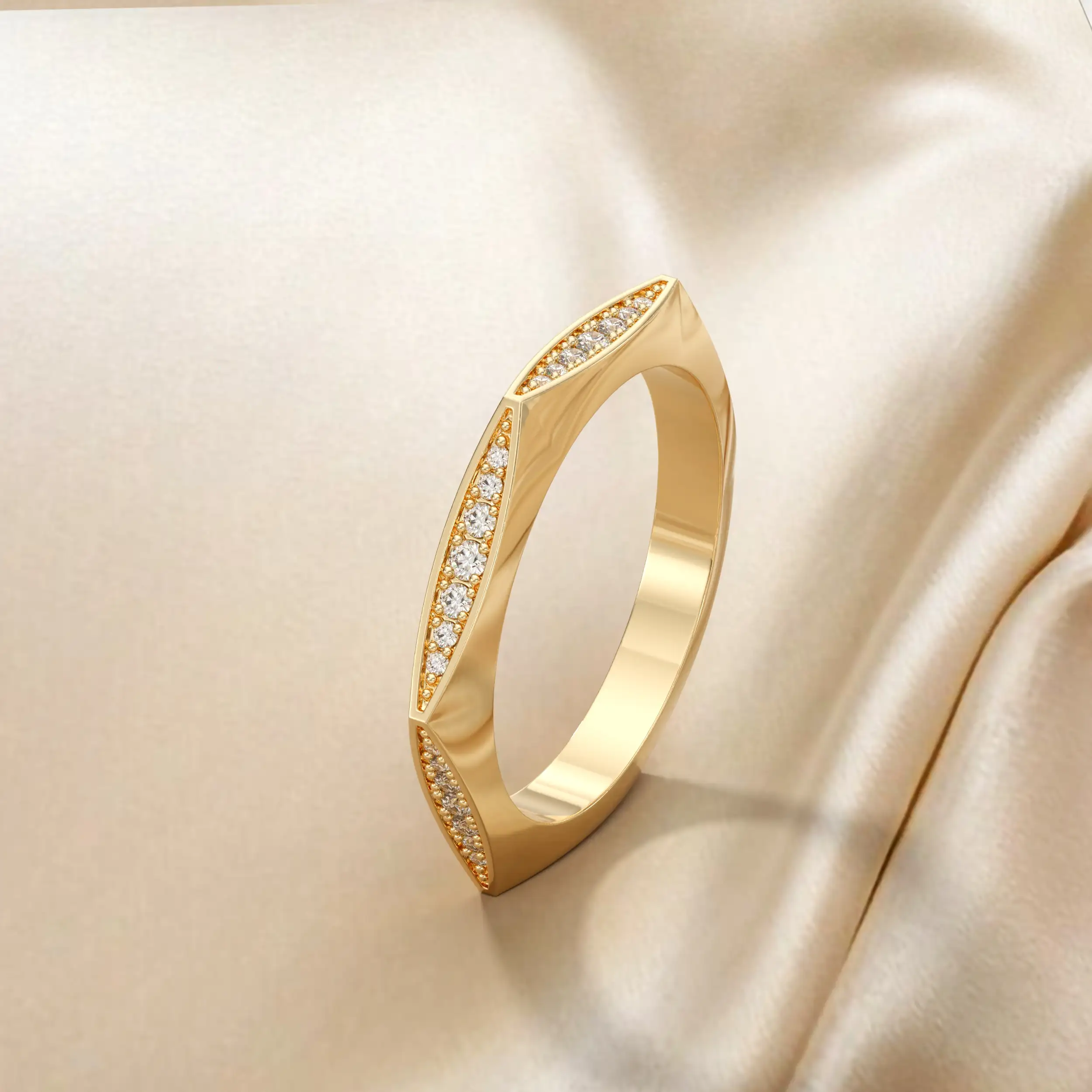 טבעת בצורת משושה עם שיבוץ יהלומים בכל צלע. מייחדת כל מראה.