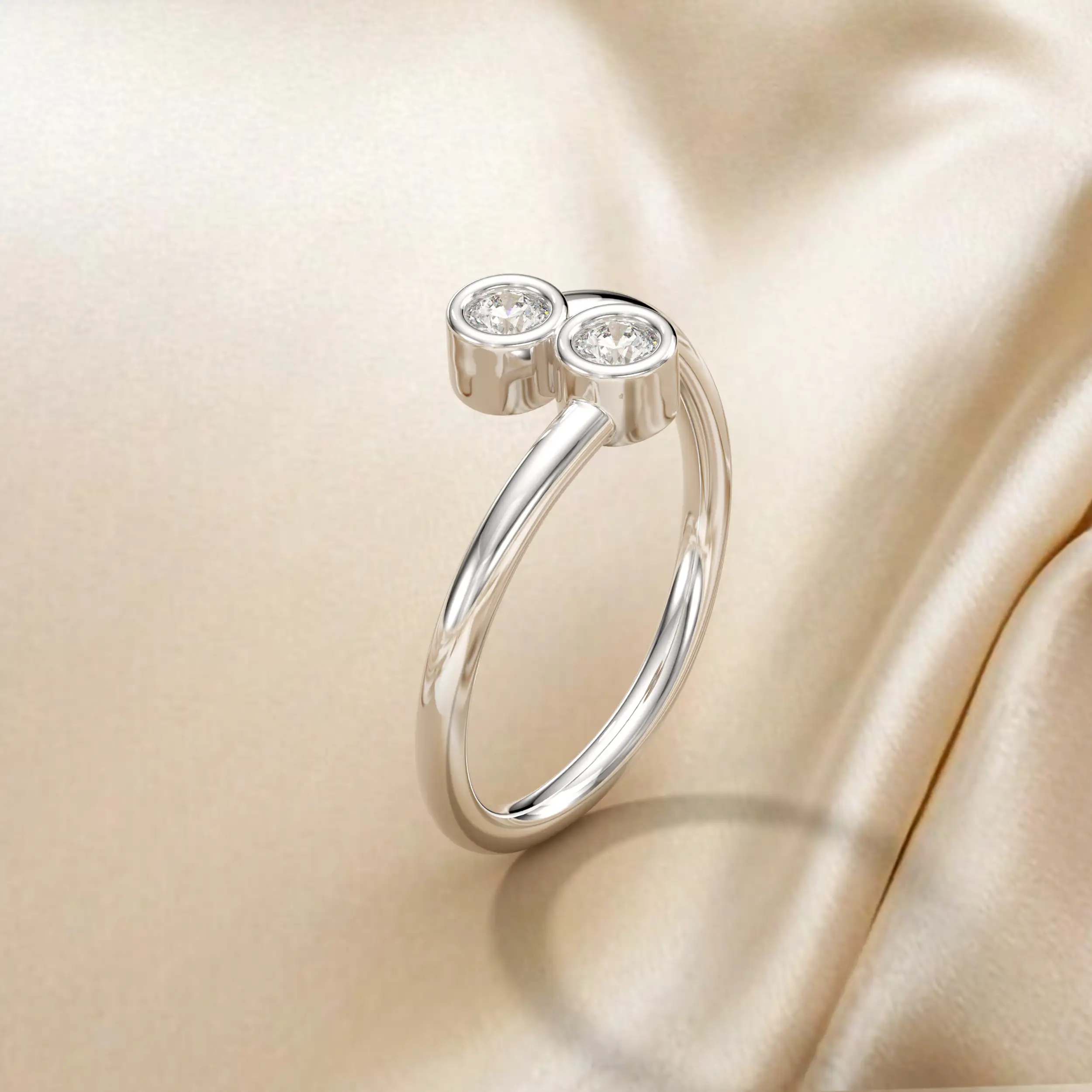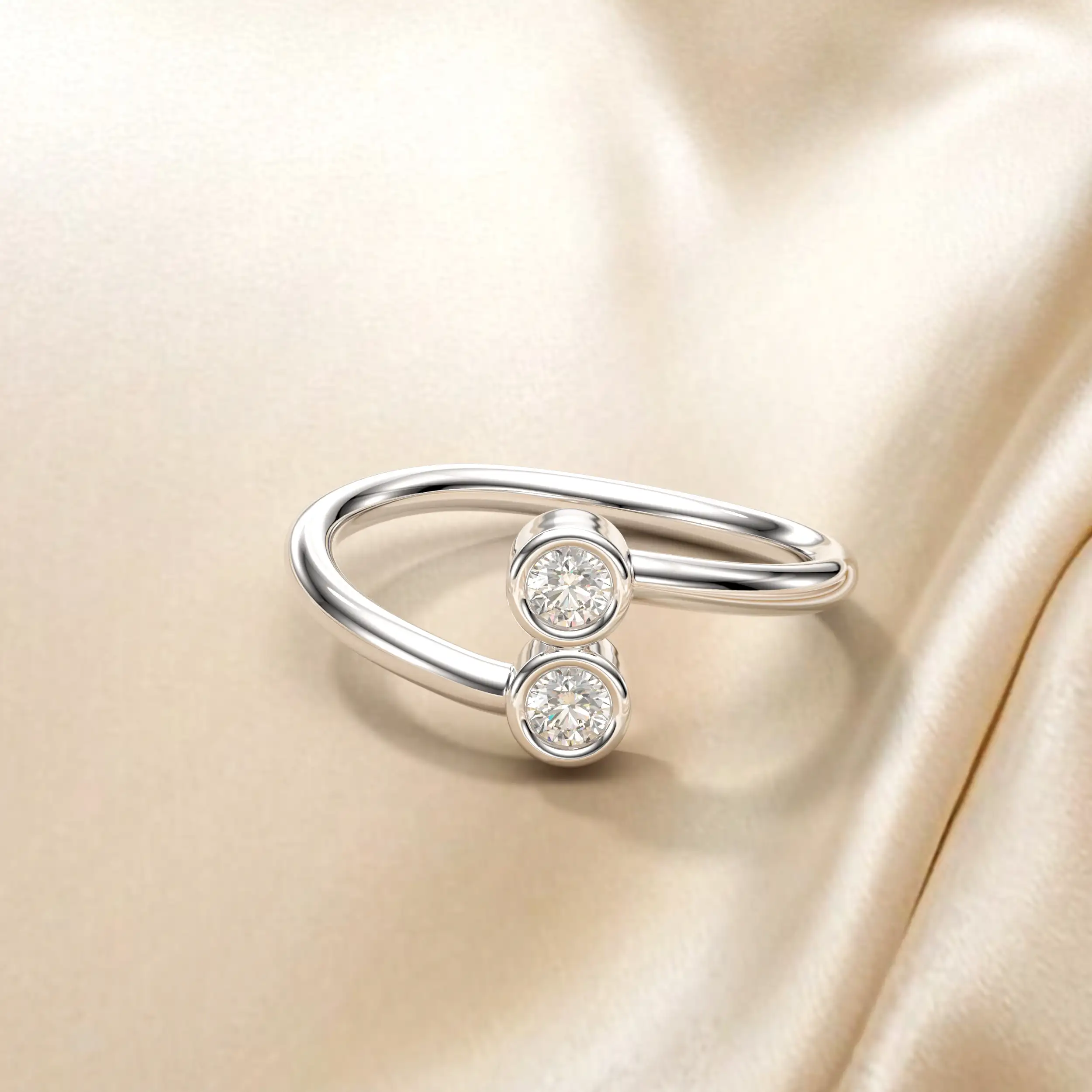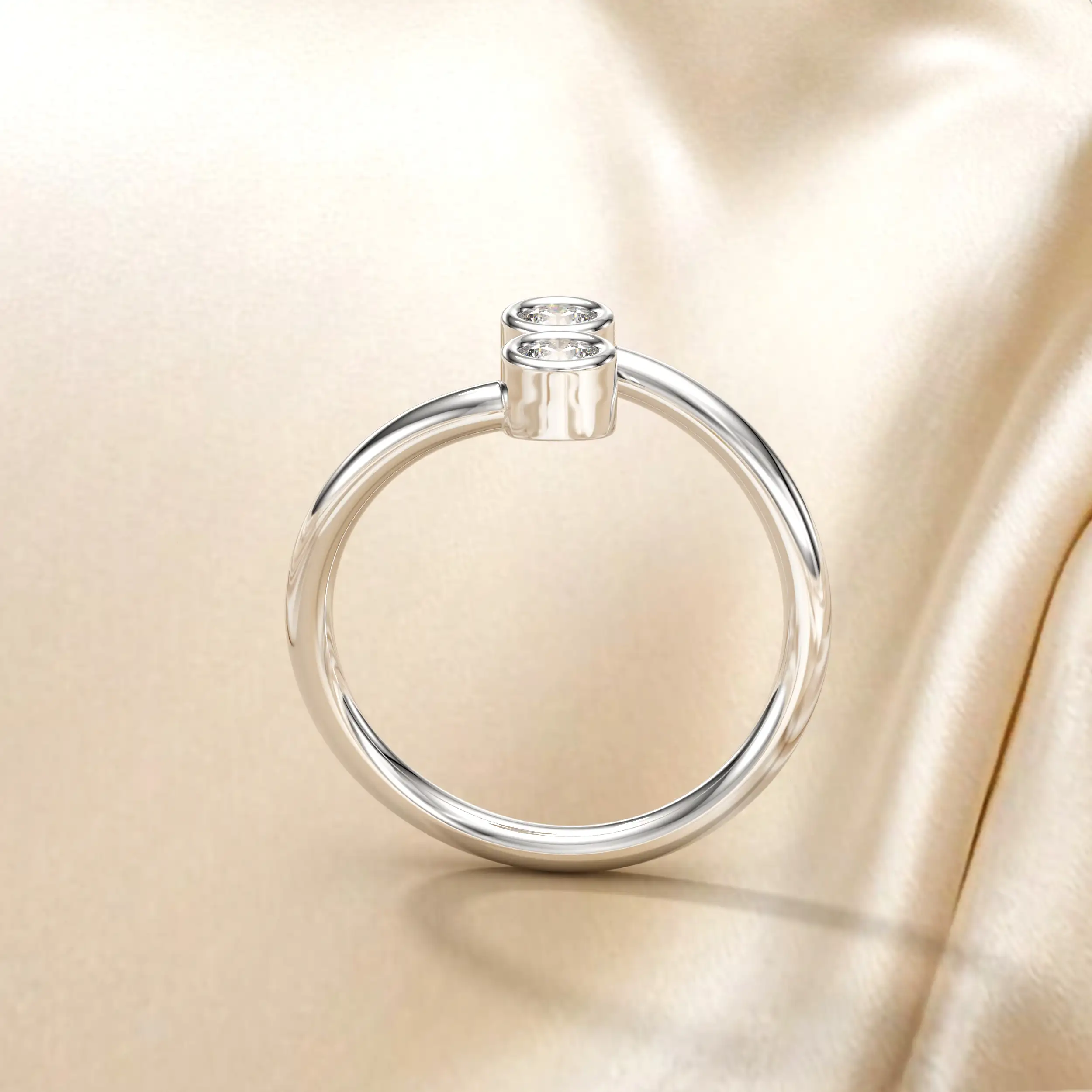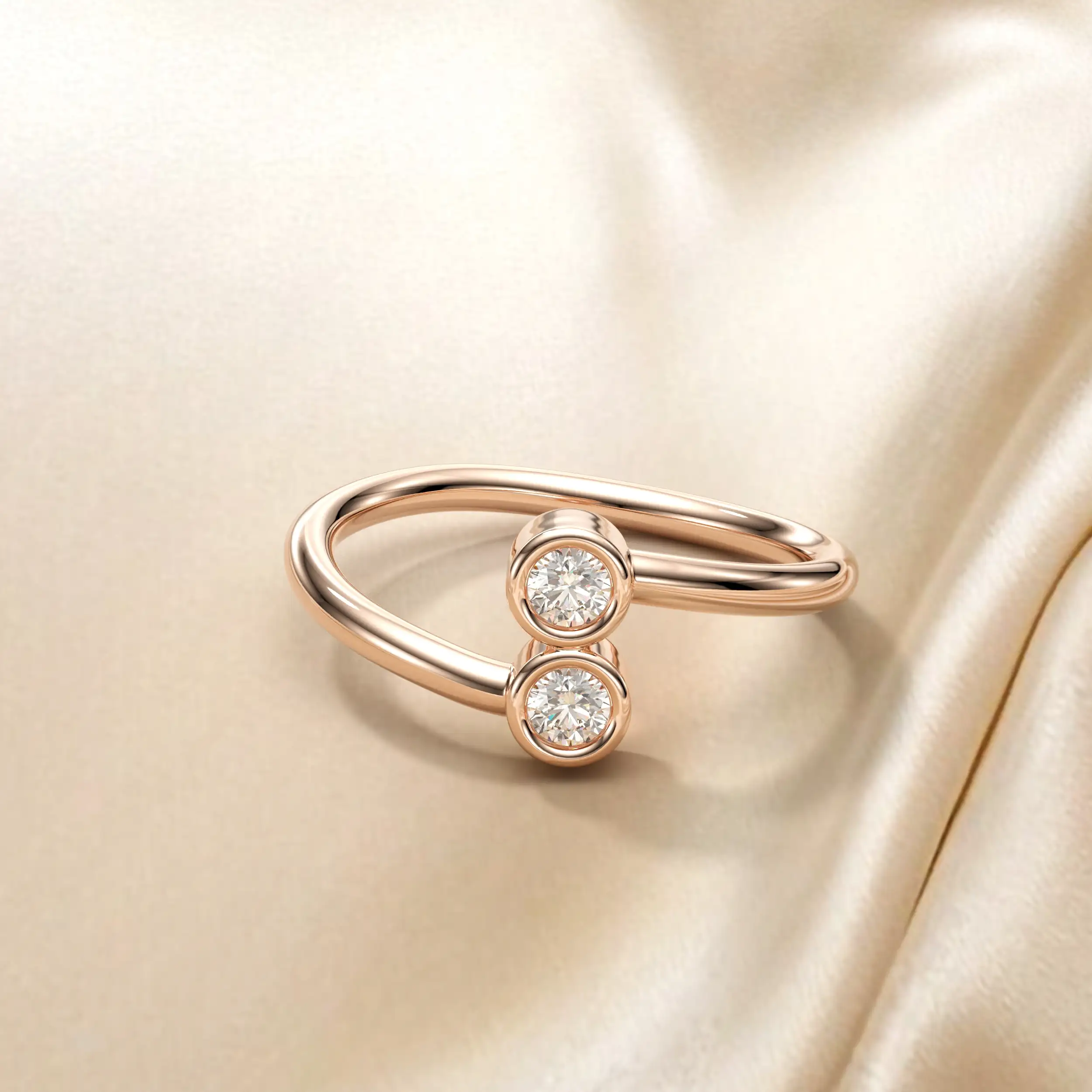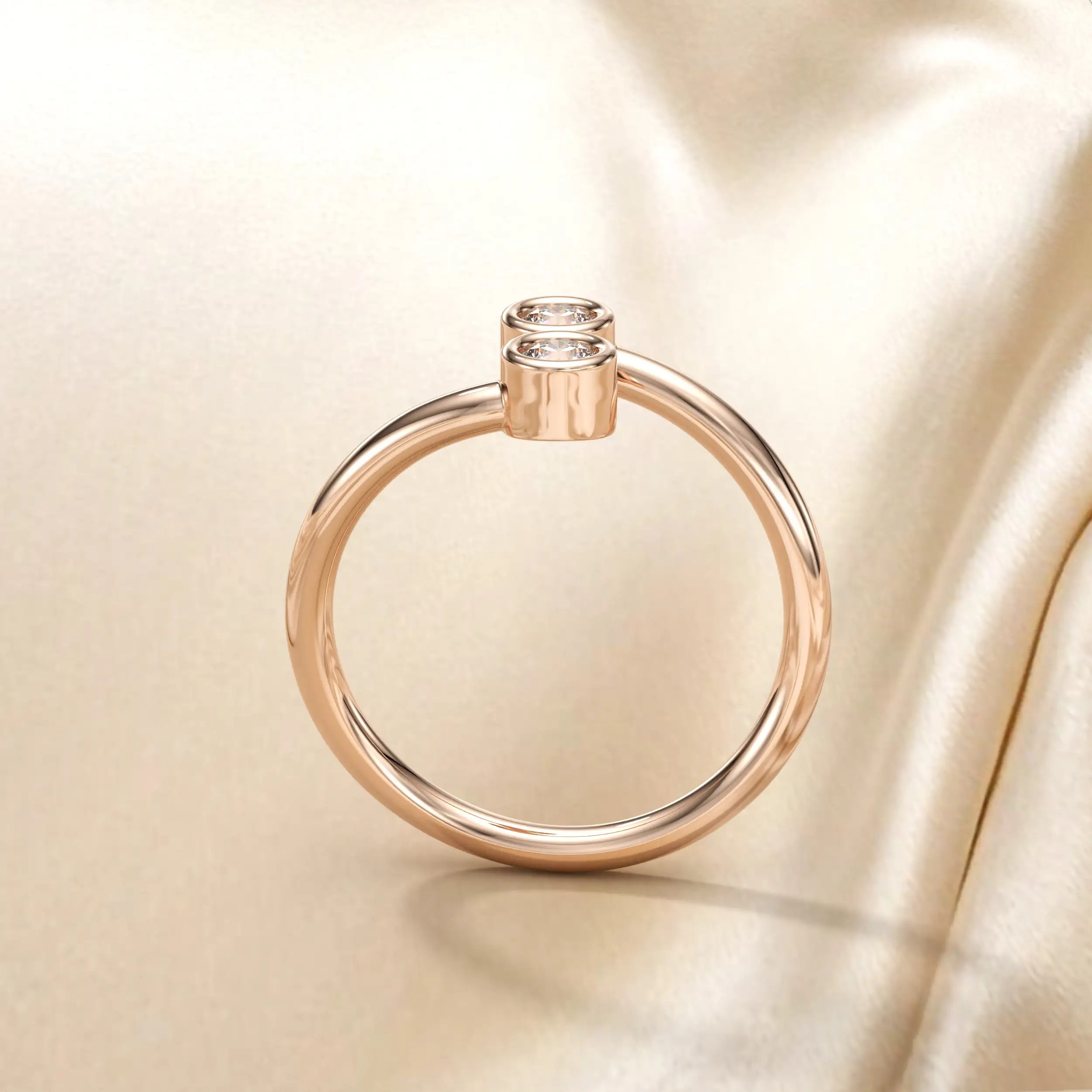 טבעת ספירלה בשיבוץ שני יהלומים להשלמת הלוק.