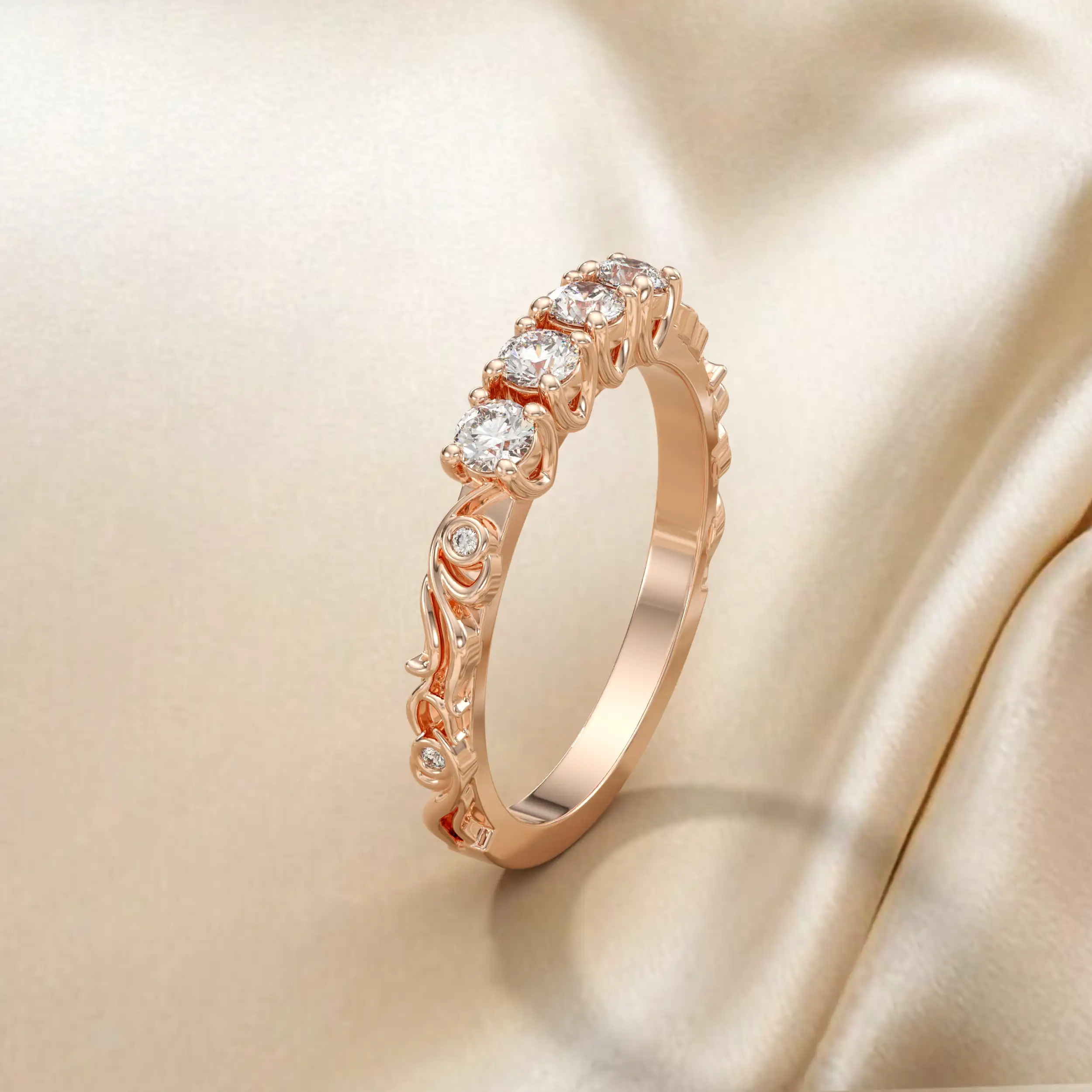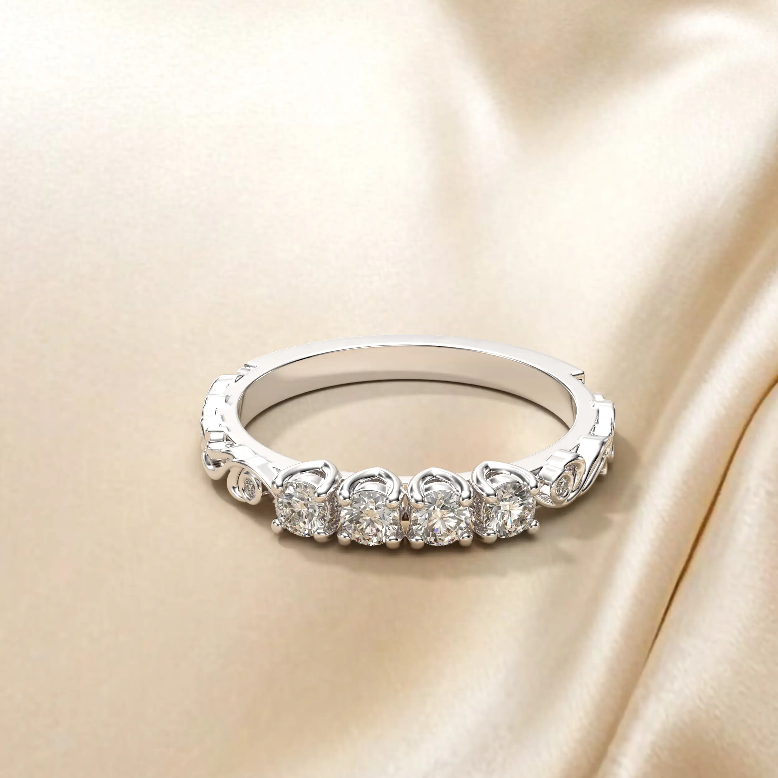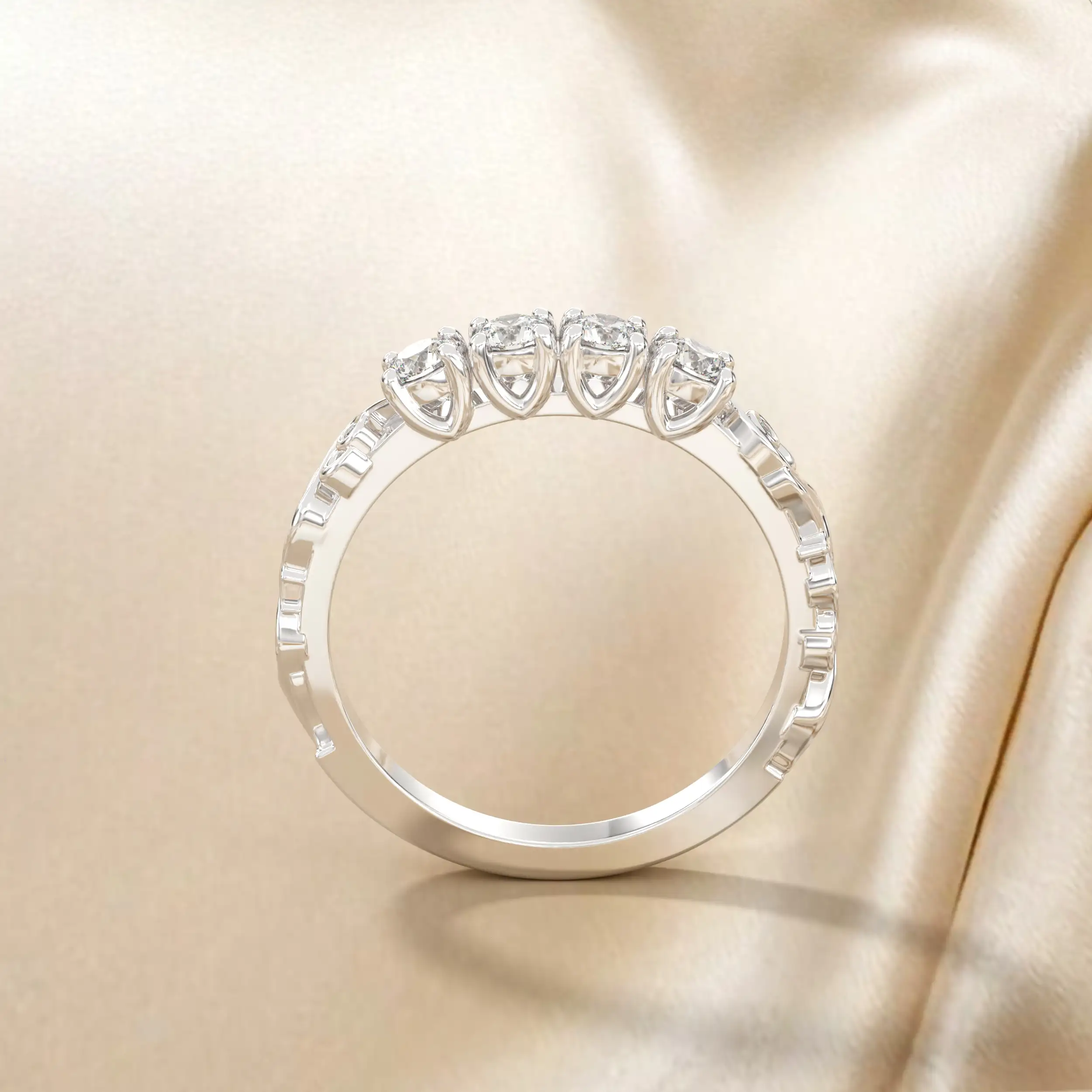 טבעת מעוטרת בשילוב יהלומים מרכזיים וצדדיים.