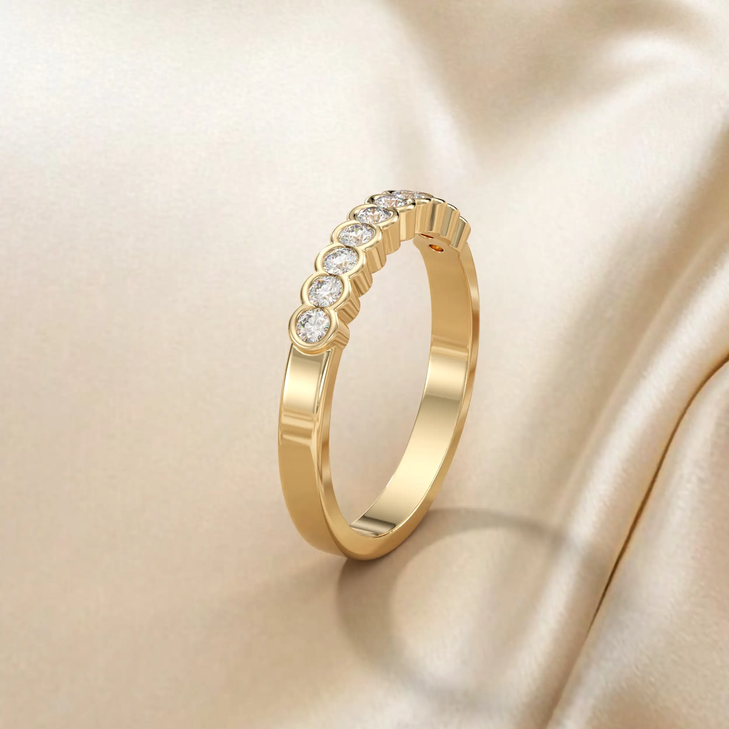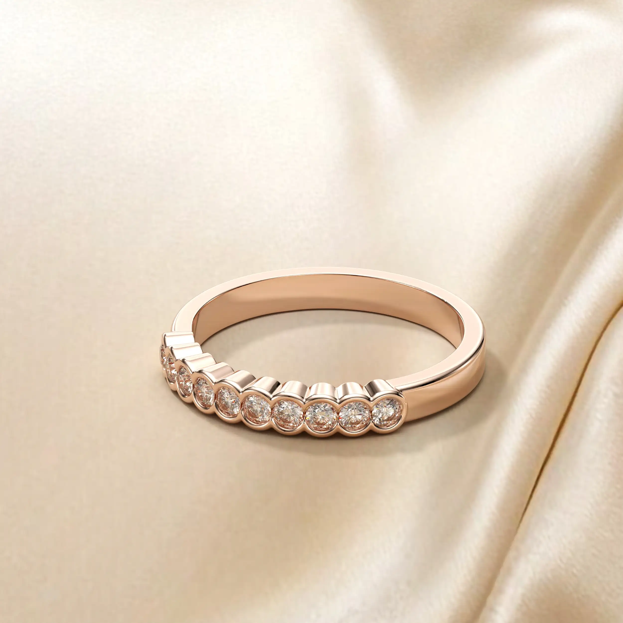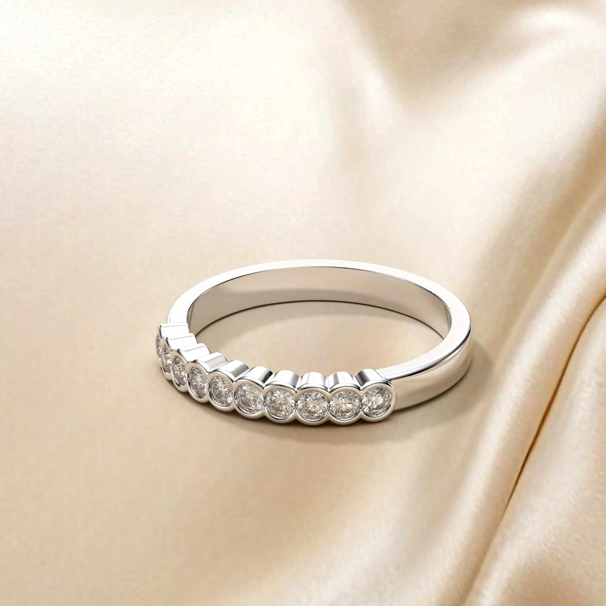טבעת שורה מיוחדת בשיבוץ יהלומים.