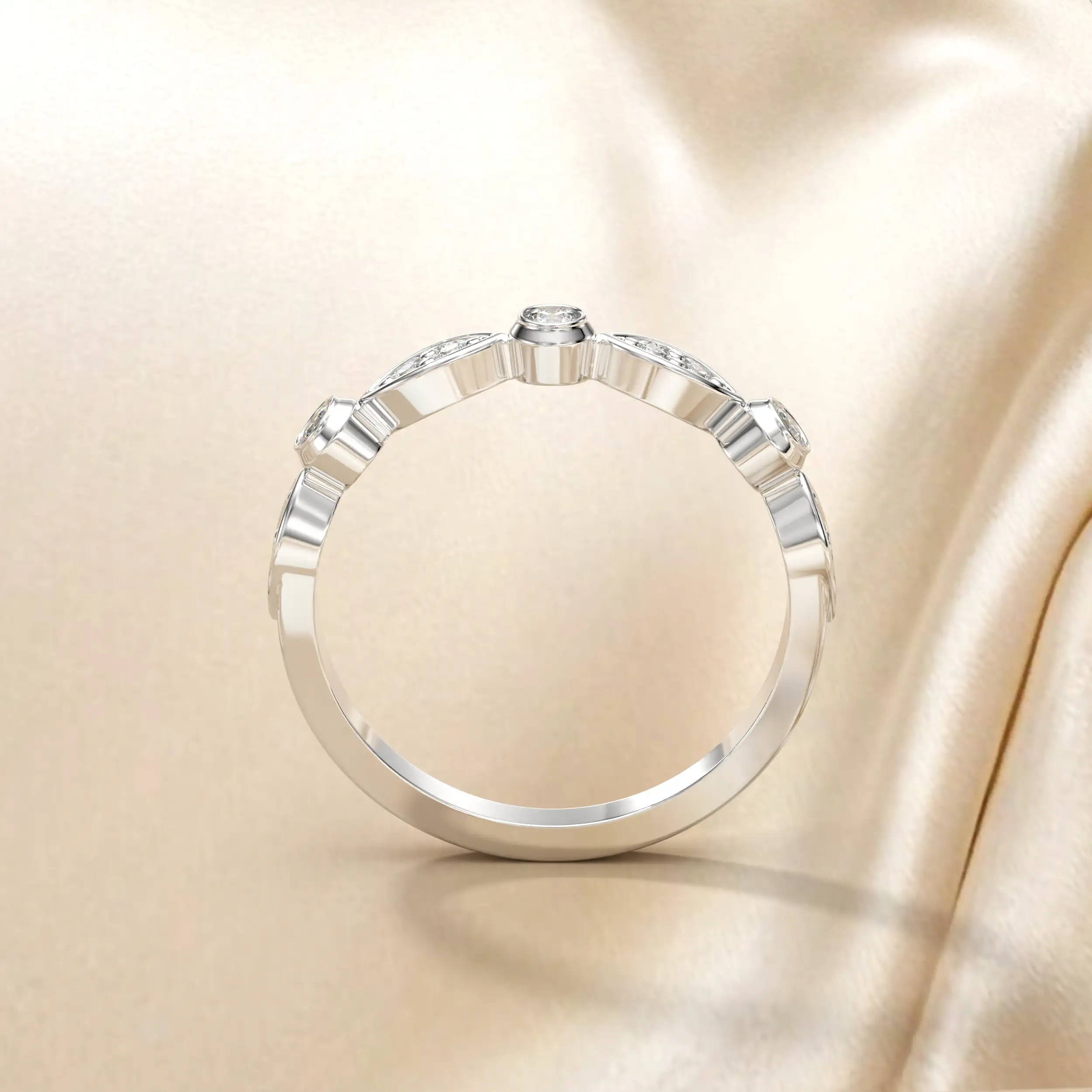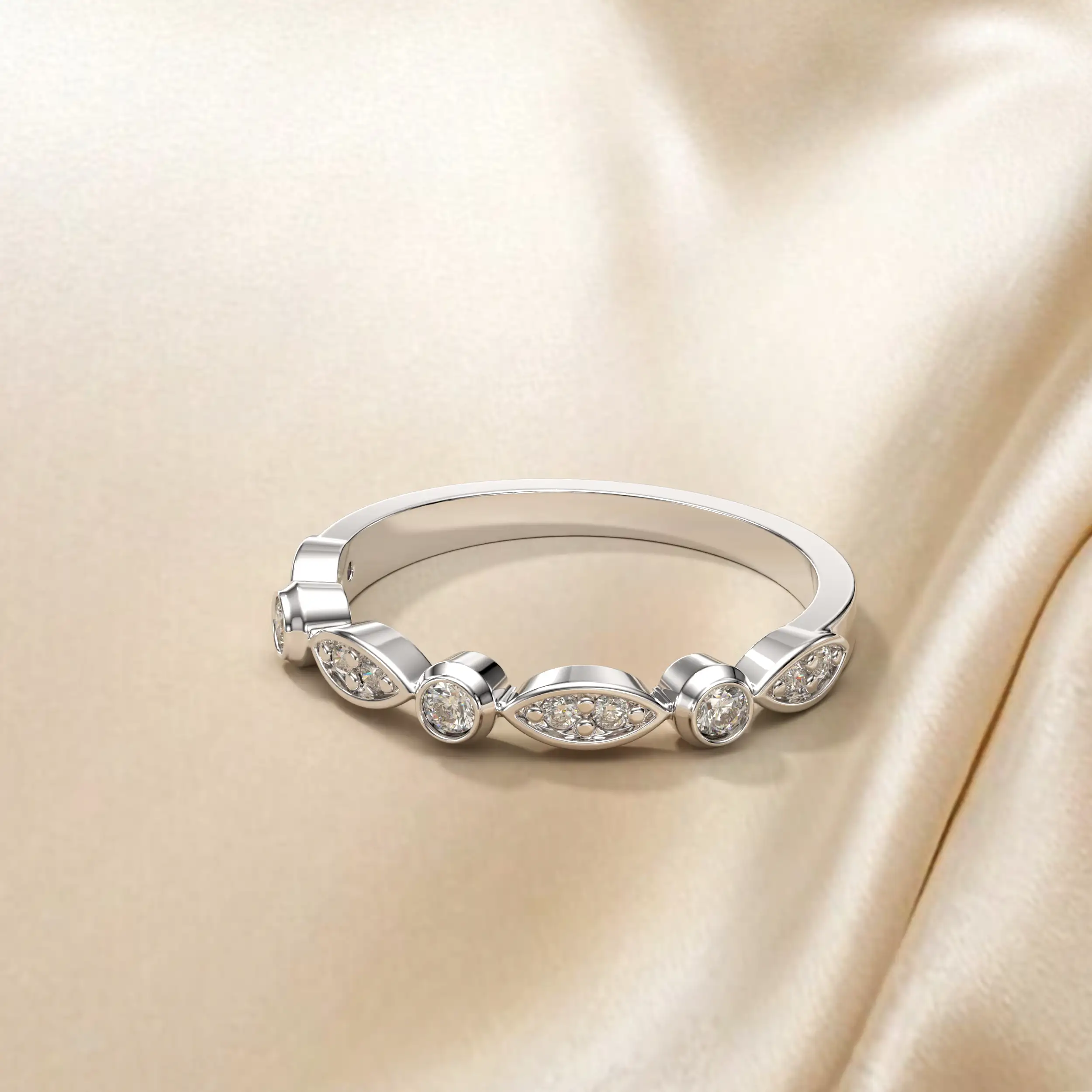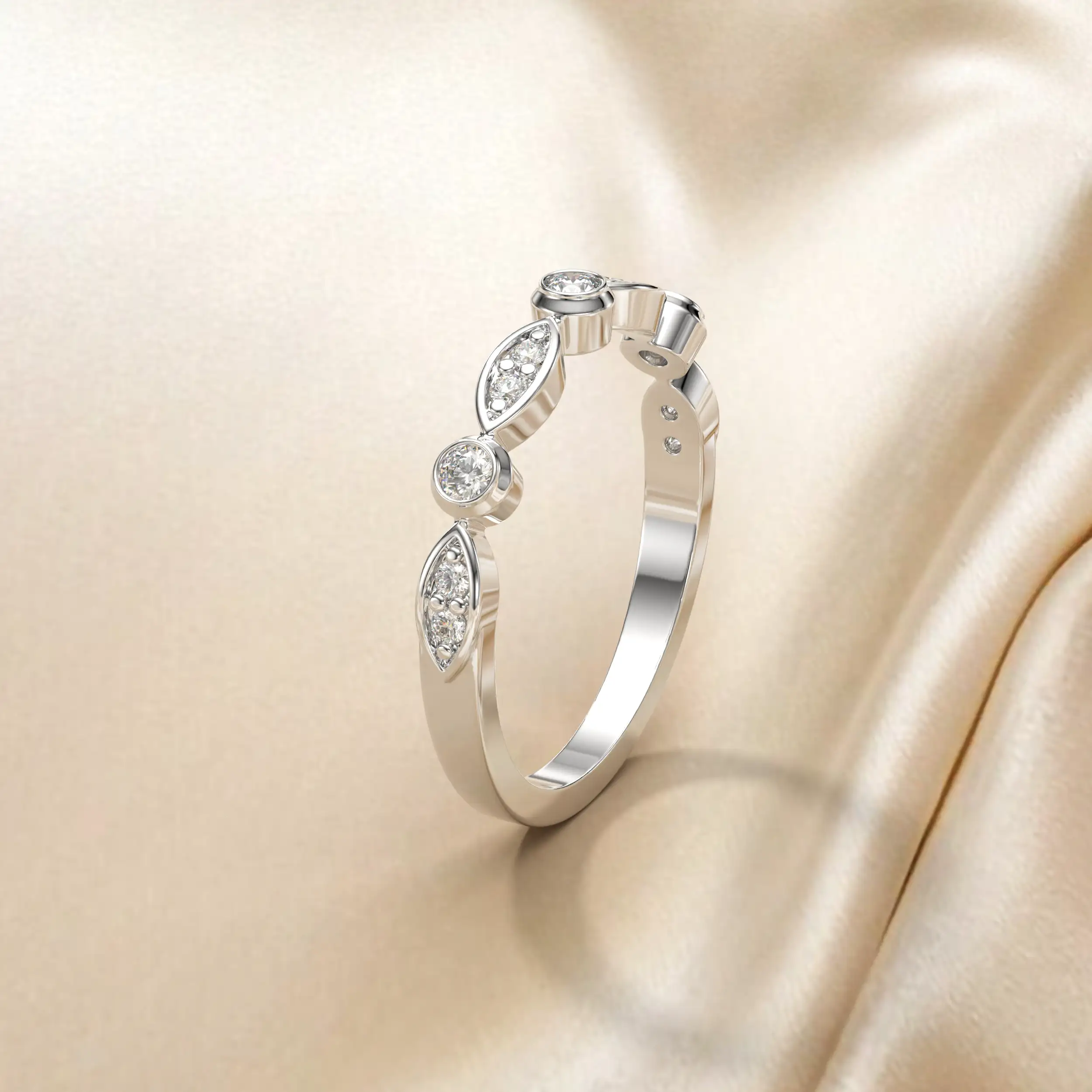 טבעת יהלומים מעודנת בשילוב צורות משתלבות של מרקיזה ועיגול.