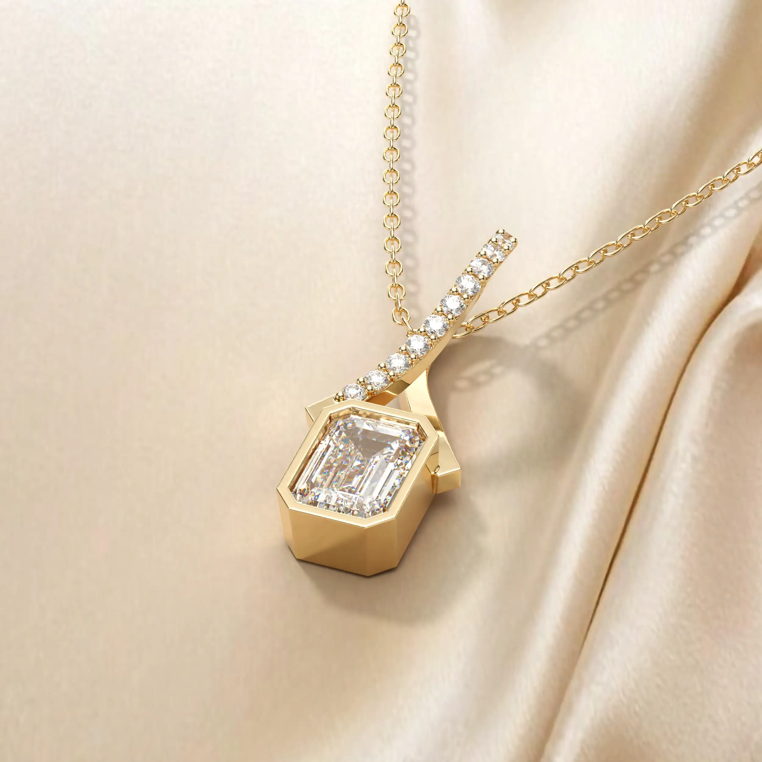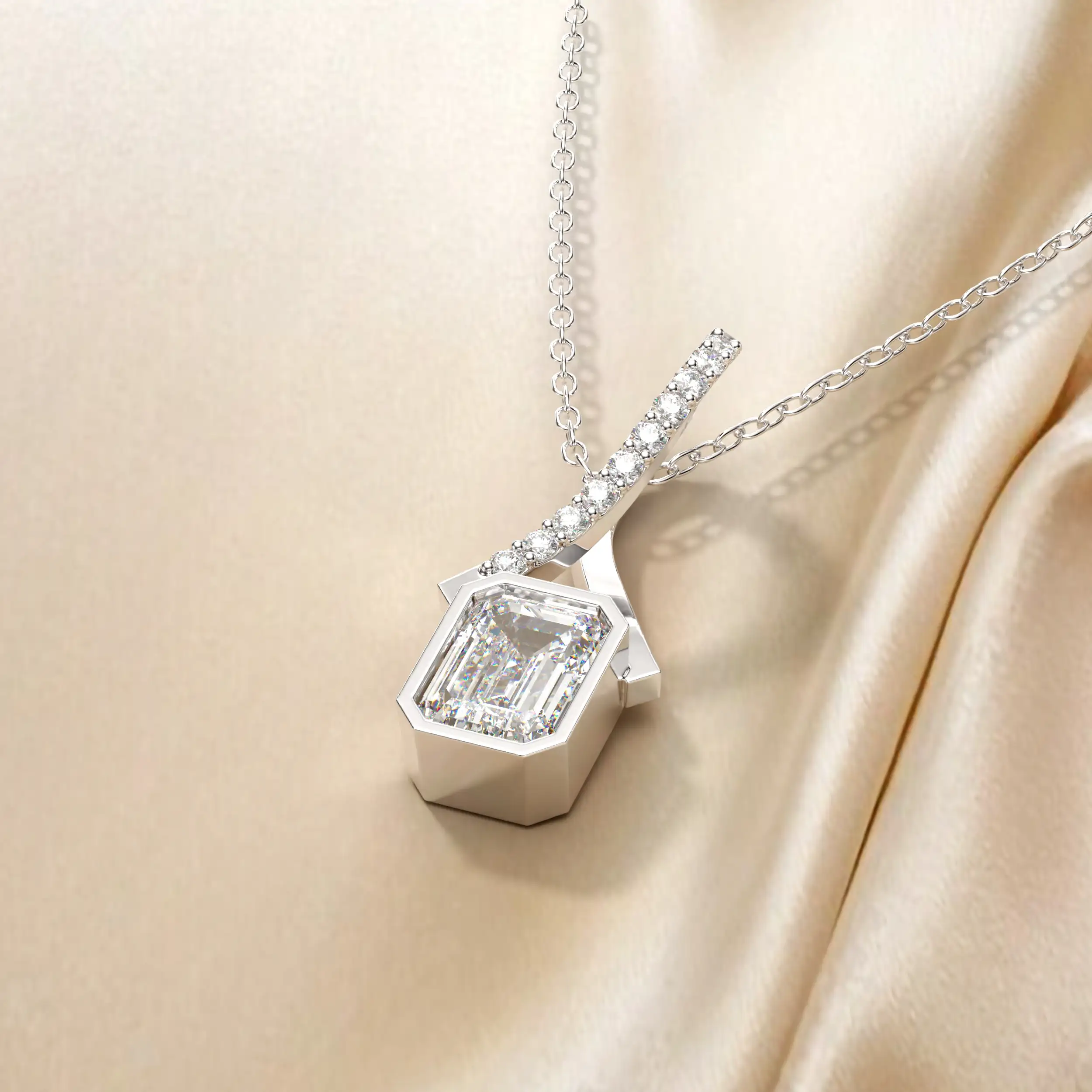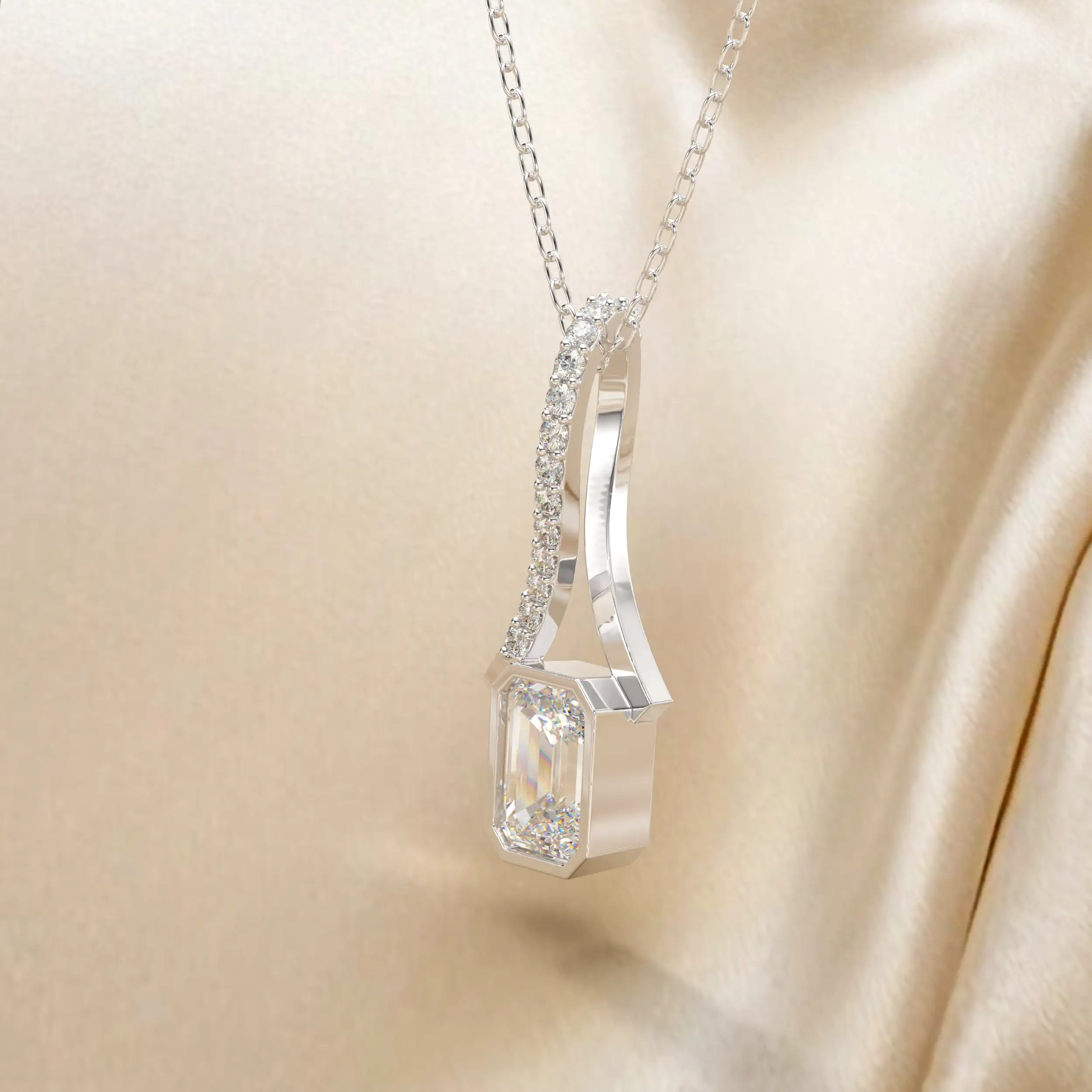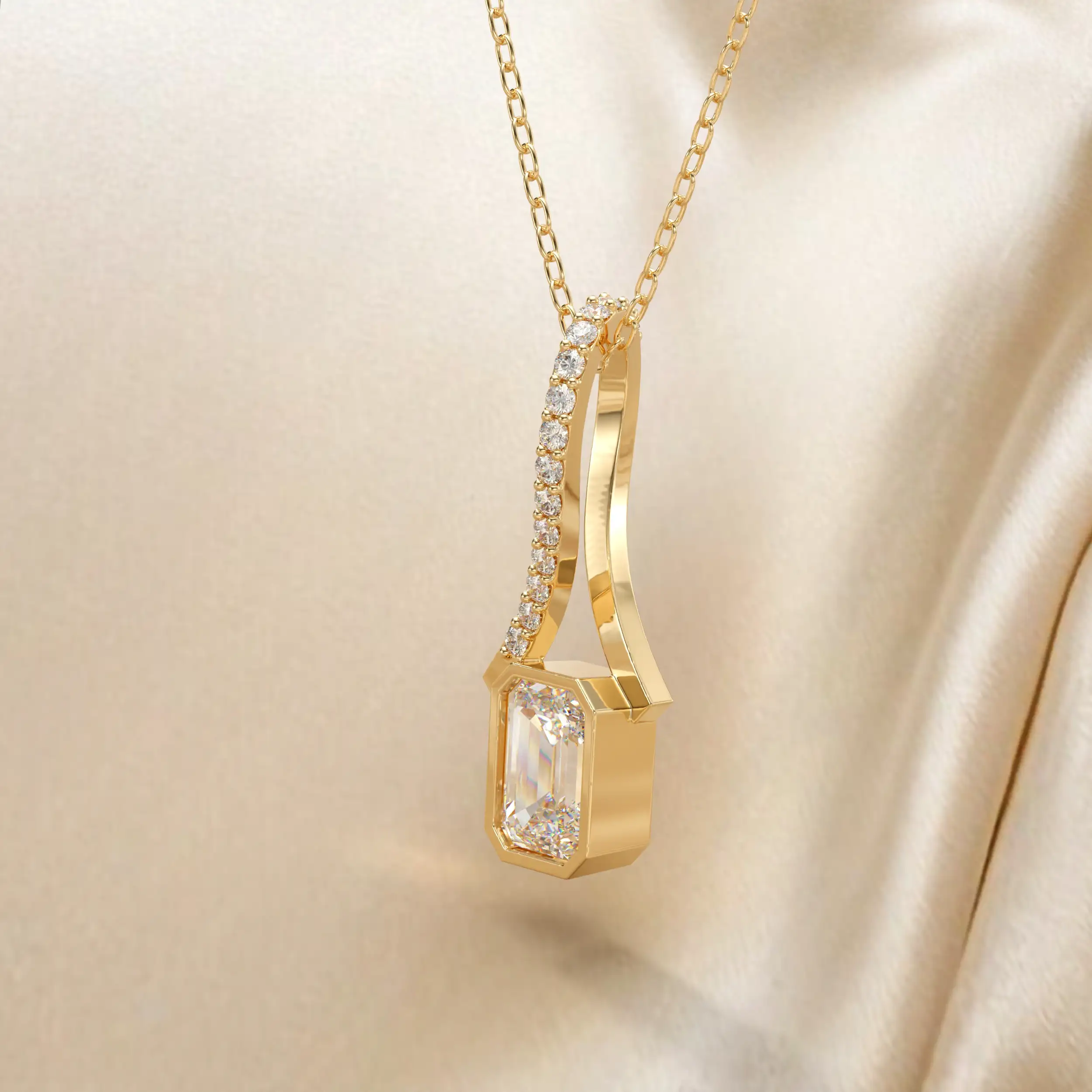 תליון תלוי אבן מרכזית מלבנית עם תלייה מיוחדת בשיבוץ יהלומים. תכשיט יפייפה לכל ענידה.